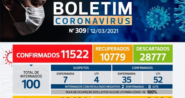 Dos 11.522 casos positivos, 10.839 pessoas apresentaram síndrome gripal e não foram internadas, 13 óbitos sem internação, 670 pessoas precisaram de internação devido a COVID-19, 453 receberam alta hospitalar e 150 positivos internados foram a óbito. 10.779 pessoas já se recuperaram totalmente da doença. 28.777 casos suspeitos já foram descartados para o novo coronavírus (156 resultados negativos foram liberados hoje).