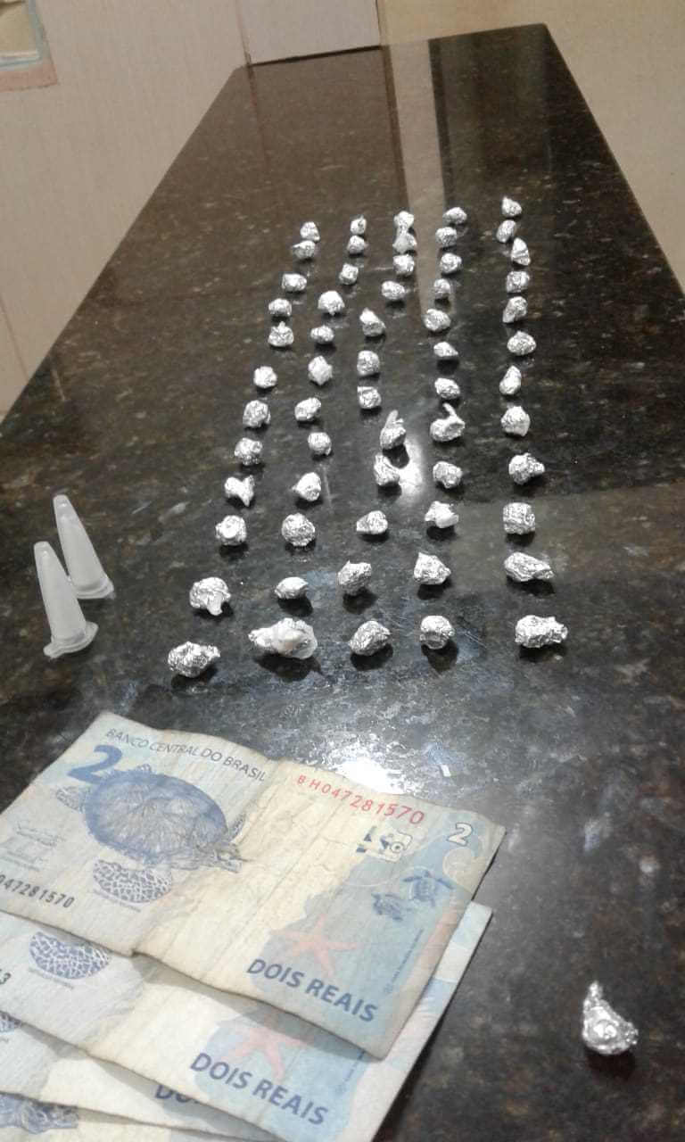 Segundo informações, a equipe do supervisor DEJEM, composta pelo sargento Adans, cabo Vagner e soldado Rasera estava em patrulhamento quando suspeitou de um jovem. Ele foi abordado e localizadas 69 pedras de crack , dois pinos de cocaína e R$ 45,00 em seu poder .