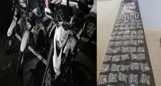 Segundo informações, policiais militares estavam em operação pelo CDHU, quando o jovem jogou um saco em um terreno. O menor foi abordado e no saco foram localizados 54 papelotes de maconha, 26 pinos de cocaína e R$ 89,80 . O menor foi encaminhado à Central de Polícia Judiciária, qualificado e liberado para a família.