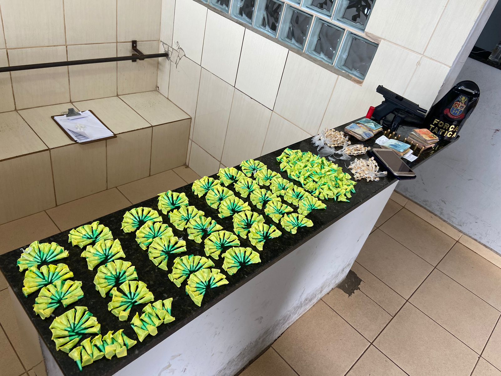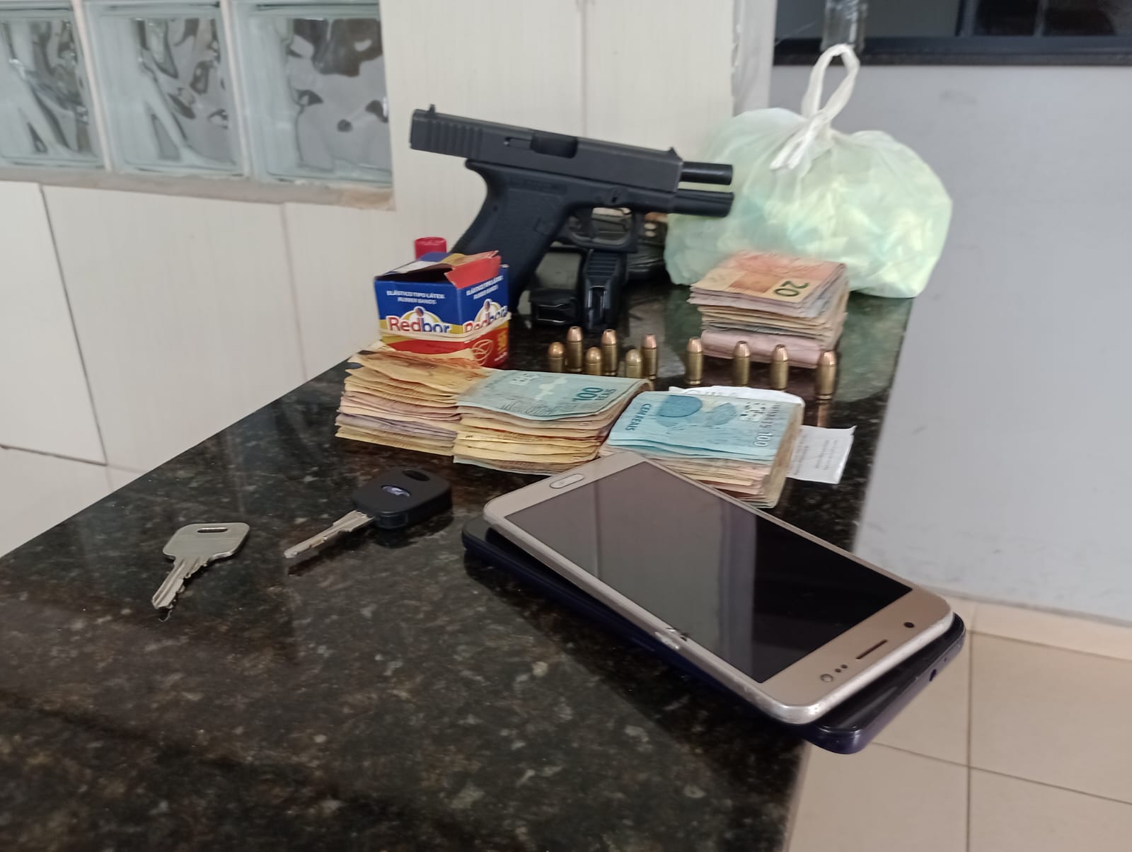 Segundo informações, policiais militares da Força Tática estavam em patrulhamento pela região sul, na referida rua abordaram um veículo Fiesta da cor prata, o qual estava sendo ocupado  por dois indivíduos. Dentro do carro, os policiais localizaram cerca de R$ 1.500,00. Os policiais já tinham conhecimento que um dos abordados, seria envolvido com crimes.  W. J. C.S, de 19 anos, disse para os policiais que na casa dele, situada na Rua Guilherme Simão Darezzo, tinha drogas e uma arma de fogo.  Os policiais foram ao local e apreenderam a arma e as drogas. A dupla foi encaminhada para a Central de Polícia Judiciária. O delegado, Dr. Reinaldo Lopes Machado autuou o indivíduo de 19 anos em flagrante e recolhe ao Centro de Triagem de São Carlos. O outro foi liberado.