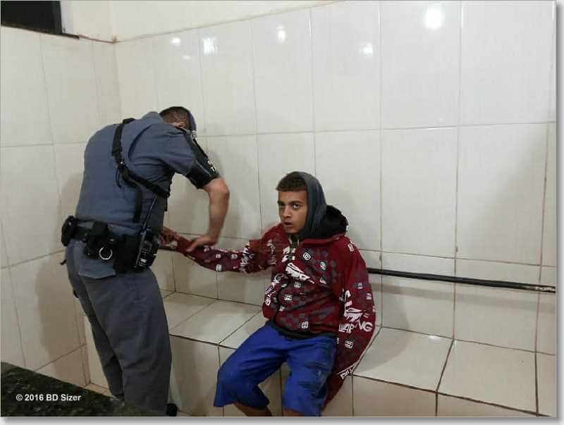 Leonardo Coelho, de 18 anos, foi para a cadeia nesta noite de sábado, 03-12-2016, suspeito de estar vendendo drogas na rua Álvaro Câmara, bairro Jd. Gonzaga, São Carlos-SP.
