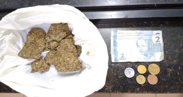 Os cabos Izomar e Lancieri localizaram com o averiguado cerca de 124 gramas de maconha e cinco reais. Ele disse que achou a maconha em um terreno baldio. O jovem foi encaminhado CPJ (Central de Polícia Judiciária), qualificado e liberado. A maconha foi apreendida.