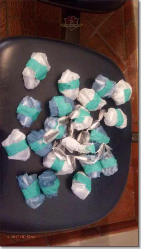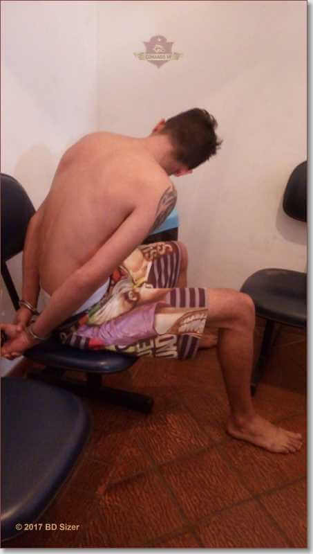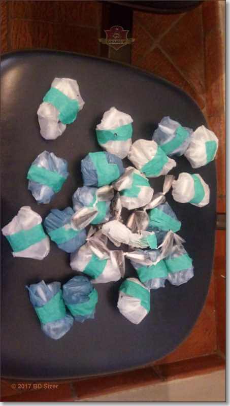 Segundo informações, o sargento Jenuy e cabo Perez estavam em patrulhamento preventivo quando avistaram André Milanez, de 18 anos, sentado em um ponto de ônibus e com uma sacola na mão. Ele saiu correndo, mas foi abordado. Dentro da sacola, segundo a PM, foram localizados os pinos de cocaína, cerca de R$ 12:00 e um rádio HT.