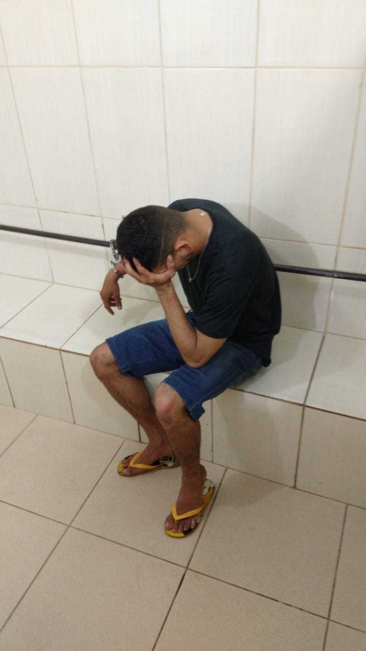 Alison Rodrigo Húngaro, de 23 anos, foi detido pela ROCAM e encaminhado ao Plantão Policial, onde está sendo apresentado ao delegado de plantão.