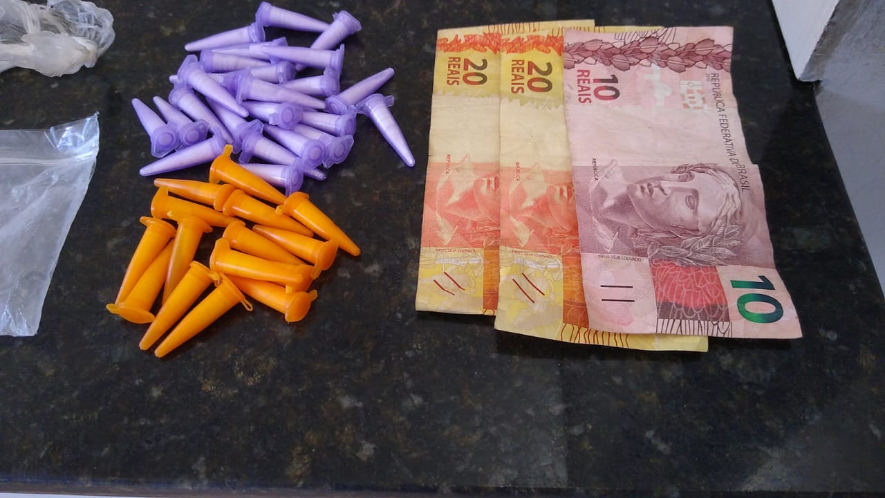 Segundo informações, a PM abordou A.S. S, 21 anos, com o mesmo foram localizados cinquenta reais. Próximo de onde ele estava foram localizados 25 pinos com cocaína e em outro local mais 15 pinos da mesma droga.