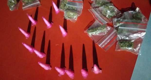 Segundo informações, o cabo Reinaldo e soldado Vale estavam em patrulhamento quando avistaram o indivíduo A.L.A.P, idade não informada. Durante busca pessoal foi encontrado um saco plástico contendo entorpecente, sendo 10 porções de maconha e 12 pinos de cocaína.