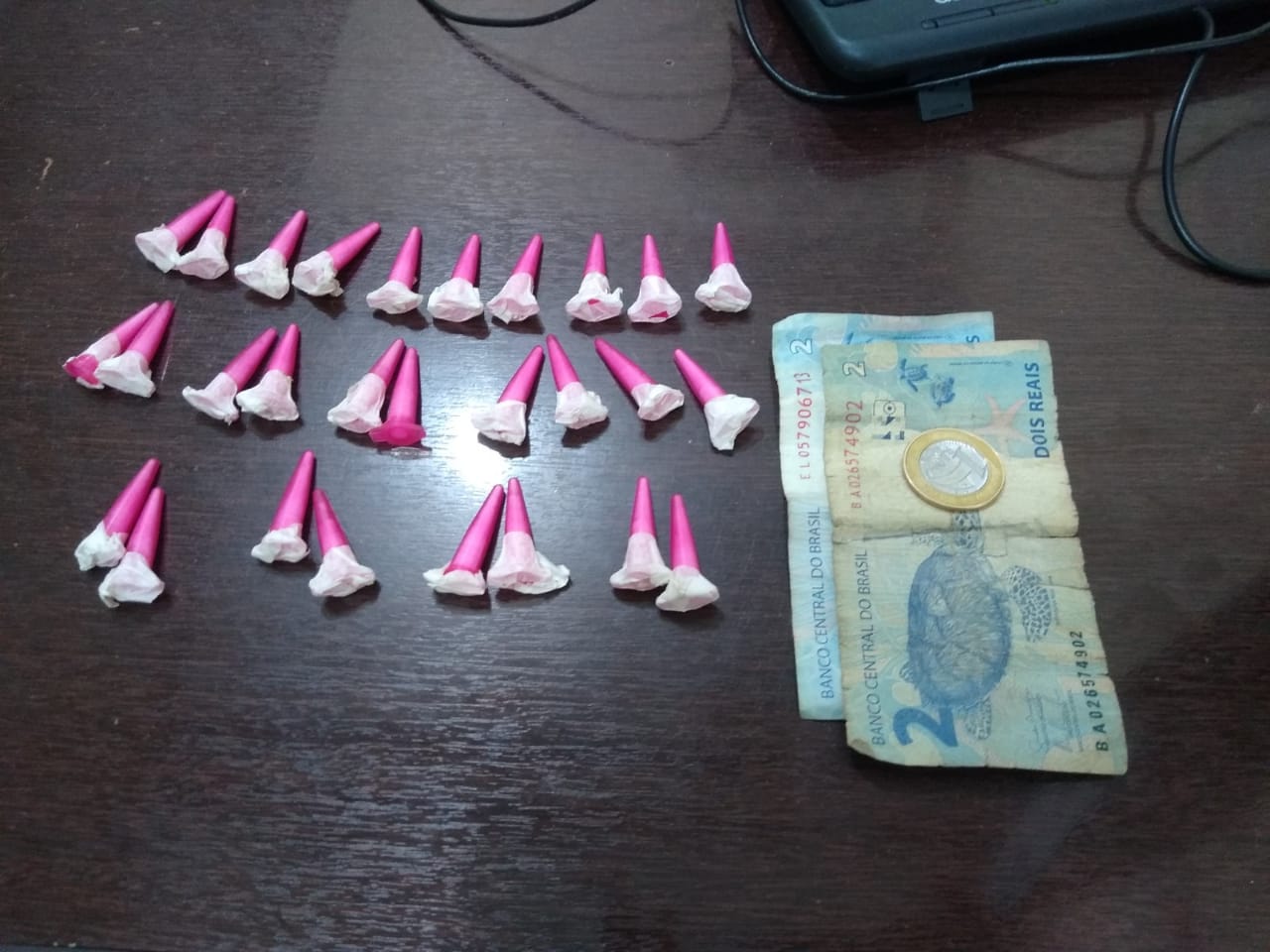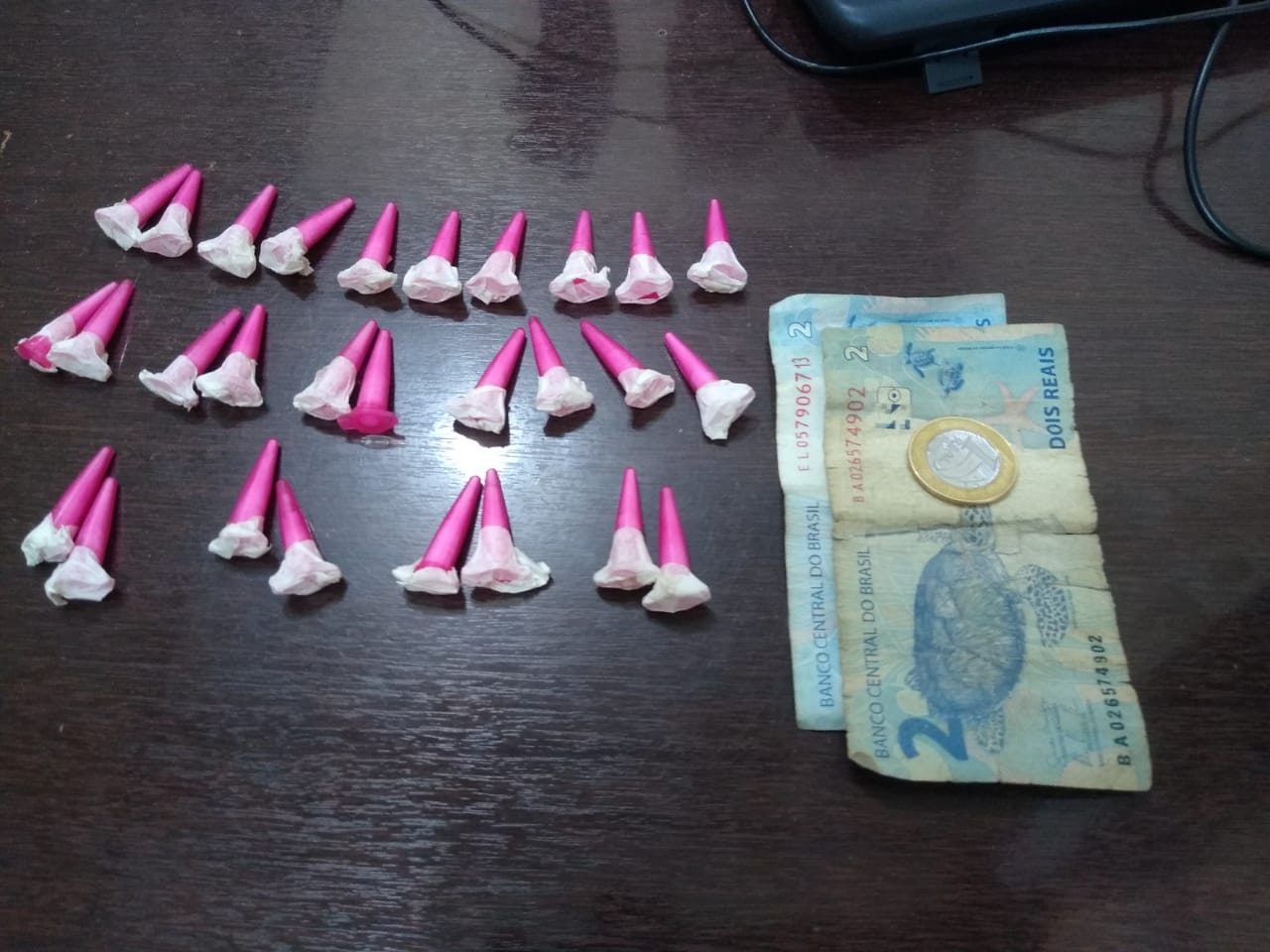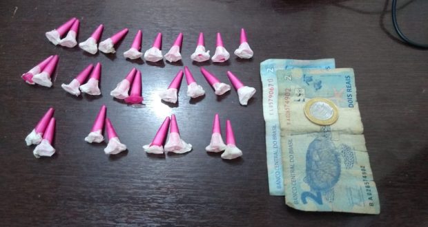 Segundo informações, R.O, de 19 anos, foi abordado pelos policiais militares Mesquita e Leal. Ainda de acordo com a PM, com a aproximação da viatura policial, o mesmo tentou fugir, mas acabou sendo detido. Os combatentes localizaram em suas vestes , 28 pinos com cocaína e R$ 5,00. O mesmo argumentou que está trabalhando em uma empresa, que constrói casas e estava levando os entorpecentes para o alojamento a fim de consumir as drogas juntos com os seus colegas.