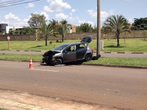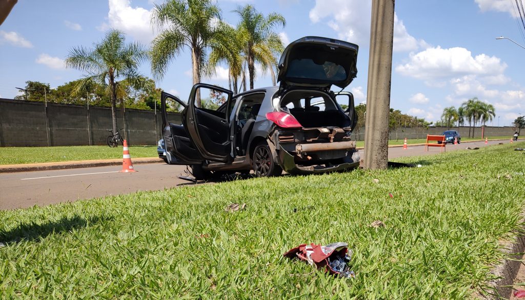 Na manhã deste sábado (25), um jovem de 23 anos sofreu ferimentos ao colidir seu veículo Peugeot/308 contra dois postes de iluminação pública, em Araraquara-SP.