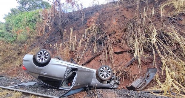Na manhã deste domingo (15-05-2022), no final da Rua Queiroz Filho, acesso à Avenida Manoel de Abreu, em Araraquara-SP, um veículo caiu em uma área da linha férrea, depois de descer em uma ribanceira de mais de 10 metros.