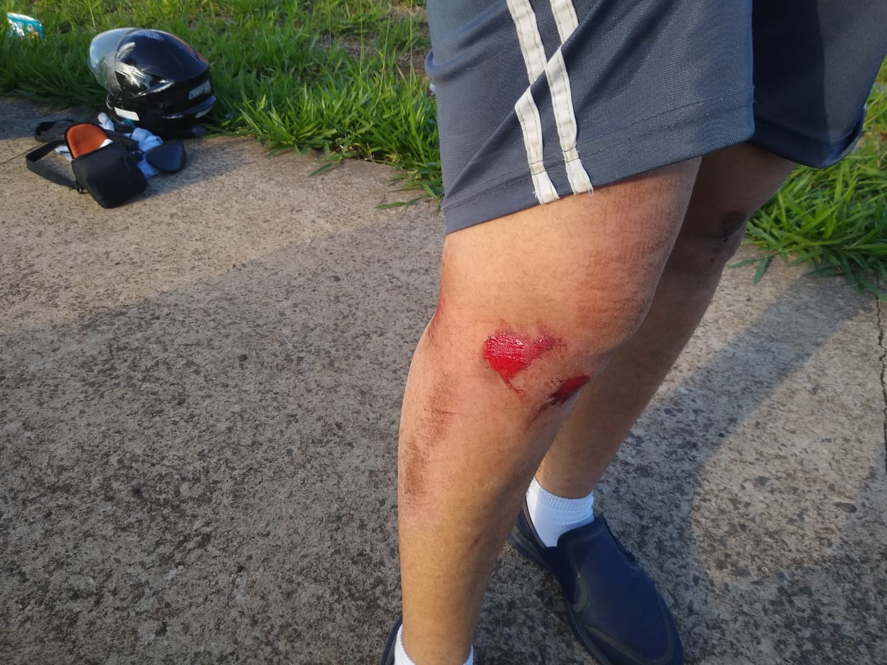Jovem sofre escoriações em acidente na Miguel Petroni