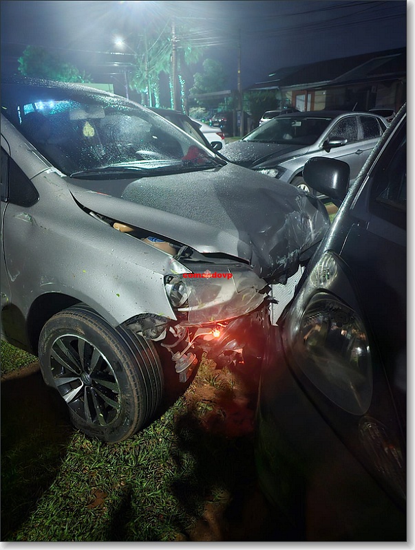De acordo com informações, eram por volta das 4h00, quando o jovem saiu de uma adega no bairro Santa Angelina, onde supostamente teria ingerido bebida alcoólica. Ele estava acompanhado de duas mulheres. Depois saiu dirigindo um veículo Fox e teria ido levar uma das mulheres no condomínio. Por estar em velocidade  não compatível com o local,   rompeu o portão e danificou cerca de sete veículos.   Três pessoas ficaram feridas, sendo uma com suspeita de fratura no nariz. A PM e o SAMU foram acionados para o local, mas as vítimas não quiseram atendimento. A PM encaminhou o indivíduo para a Central de Polícia Judiciária, onde ele aceitou fornecer sangue para exame de dosagem alcoólica. O sujeito ficou à disposição da justiça.