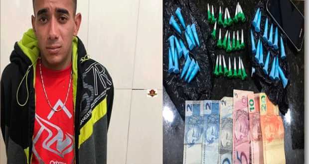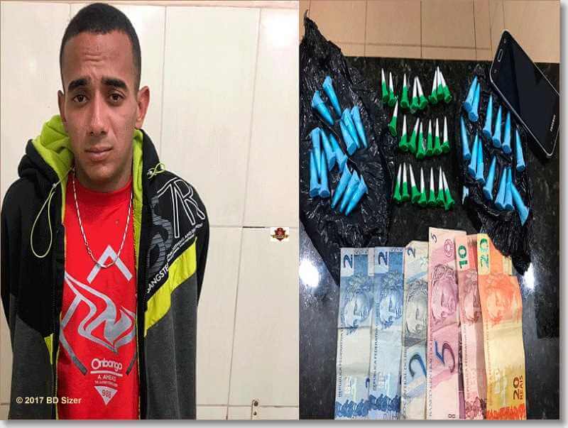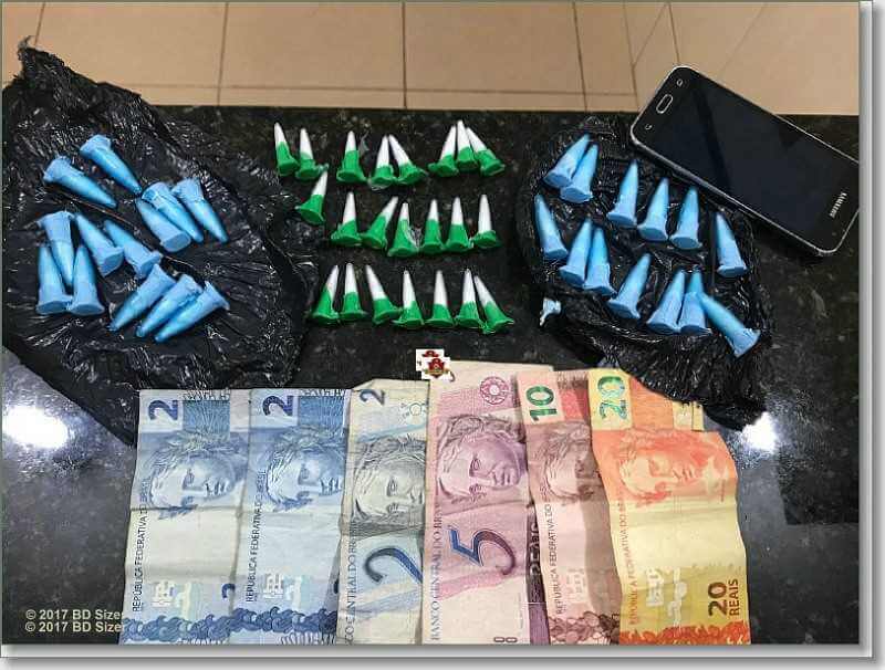 Segundo informações, o cabo Simão, soldados Tercio e Alex estavam fazendo patrulhamento preventivo pela referida rua quando avistaram um indivíduo próximo a um carro abandonado. Ele ao ver a viatura, teria jogado uma sacola debaixo do carro. Os policiais então o abordaram e no seu bolso foi localizado um pino de cocaína e R$ 41,00. No total foram localizados 48 pinos de cocaína e a referida quantia em dinheiro. Alexsandro Aparecido Avelino, de 21 anos, recebeu voz de prisão e foi encaminhado ao Plantão Policial, onde o delegado Dr. Adriano Calsen Allexandrino ratificou a voz de prisão e mandou o mesmo para o Centro de Triagem por tráfico de drogas.