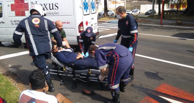 Dois jovens, ambos de 20 anos, ficaram feridos em um acidente de trânsito, ocorrido nesta tarde de quinta-feira, 25/05/2023, na Av. São Carlos, defronte ao Cemitério Nossa Senhora do Carmo, bairro Cidade Jd., São Carlos-SP.