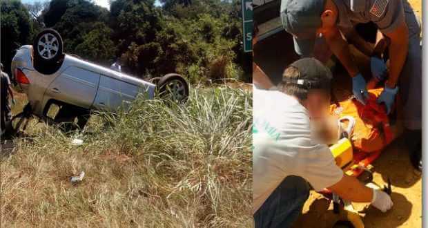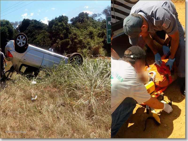 Quatro jovens de Dourado -SP capotaram um carro e um ficou ferido nesta tarde de domingo, no km 158 da rodovia Professor Luís de Oliveira, entre São Carlos, Ribeirão Bonito -SP.
