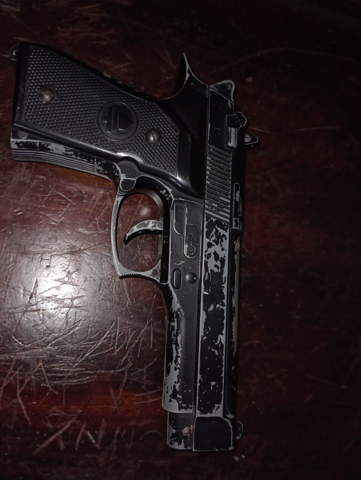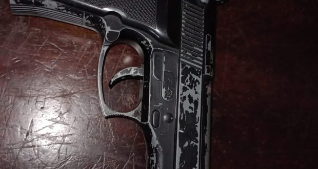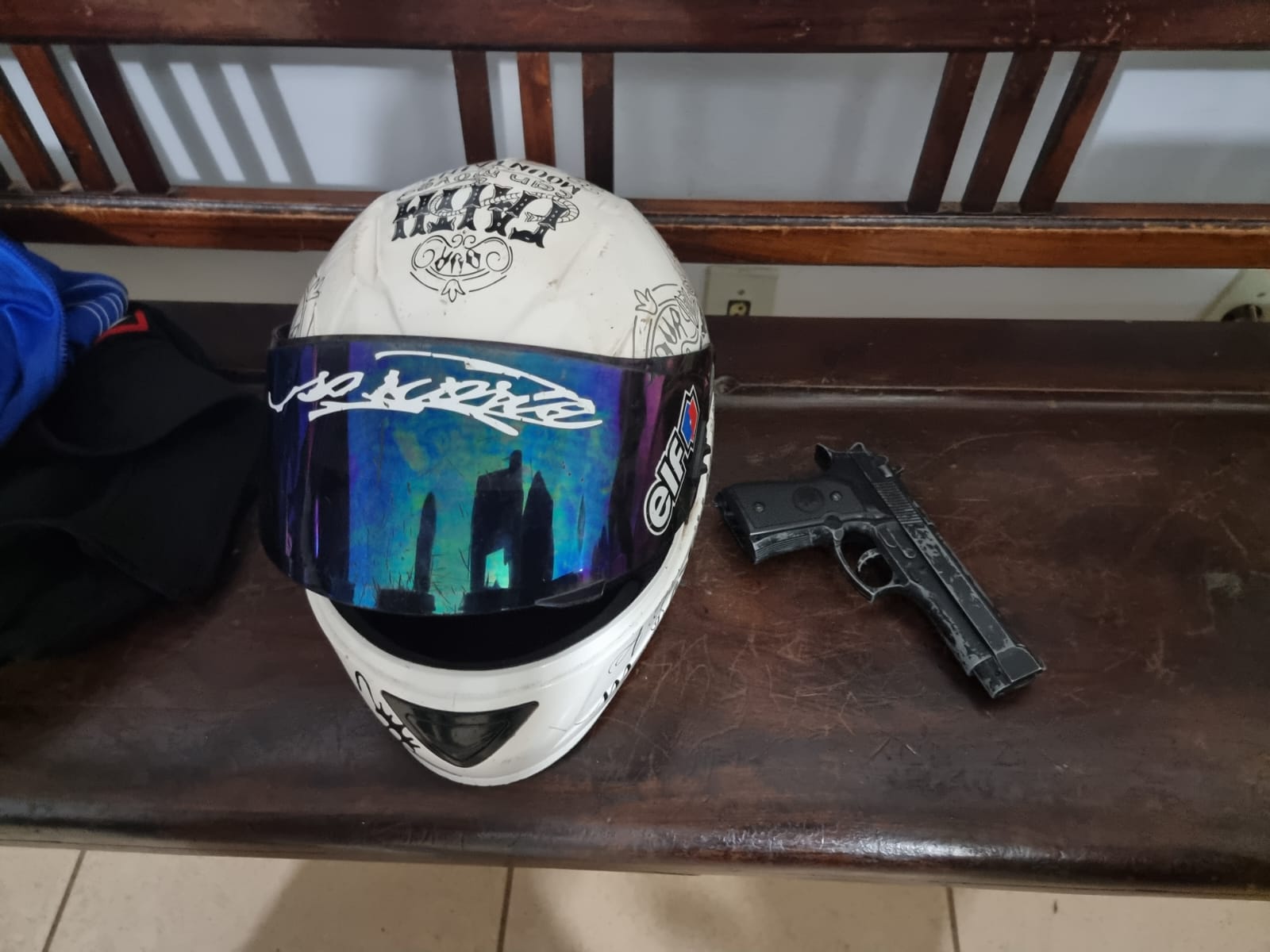 Segundo informações, a GM recebeu denúncia, que dois indivíduos estariam em atitude suspeita e um com uma arma de fogo na cintura. As equipes foram para o local e acabaram detendo a dupla. Com o jovem de 21 anos foi localizado o simulacro de arma de fogo, já com o menor foi encontrado um capacete. Ambos são moradores da cidade de Ibaté e conhecidos nos meios policiais. Eles negaram estar arquitetando crime. Ambos foram conduzidos para a Central de Polícia Judiciária, qualificados e liberados. O simulacro e o capacetes forma apreendidos.