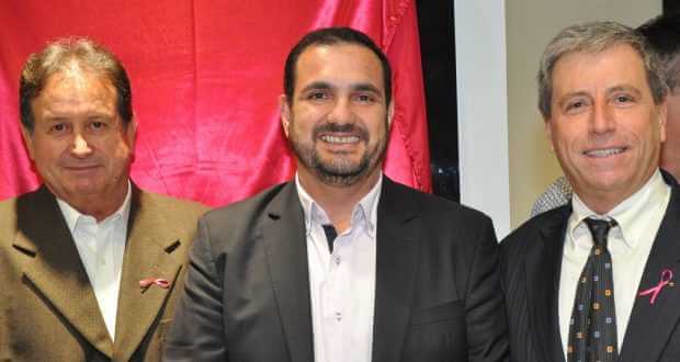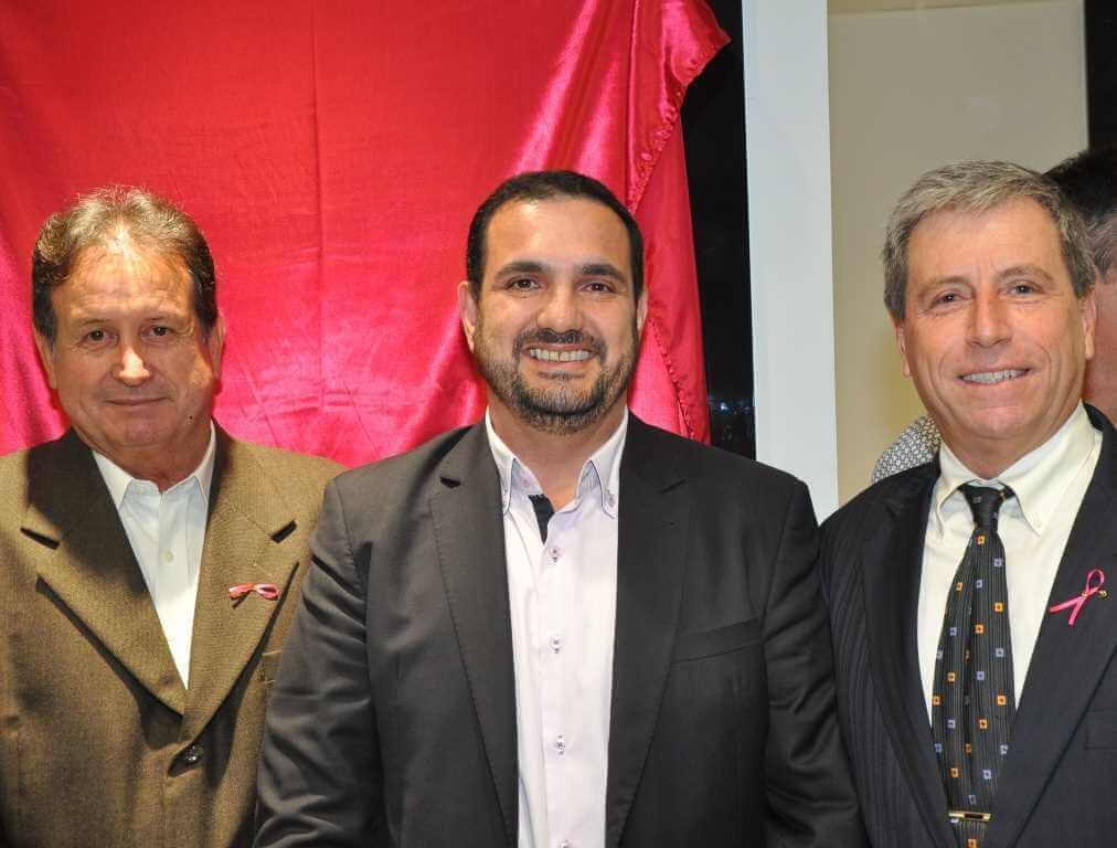 Julio Cesar, com Zelão (à direita) e o diretor de Esportes José Antonio de Faria Godoi: Reeleição na ACISC consagra gestão continuada e compartilhada