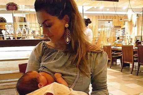 — Pelo menos tem que cobrir é um desrespeito com os outros em volta sou mãe e não fico pagando peito na frente dos outros não.