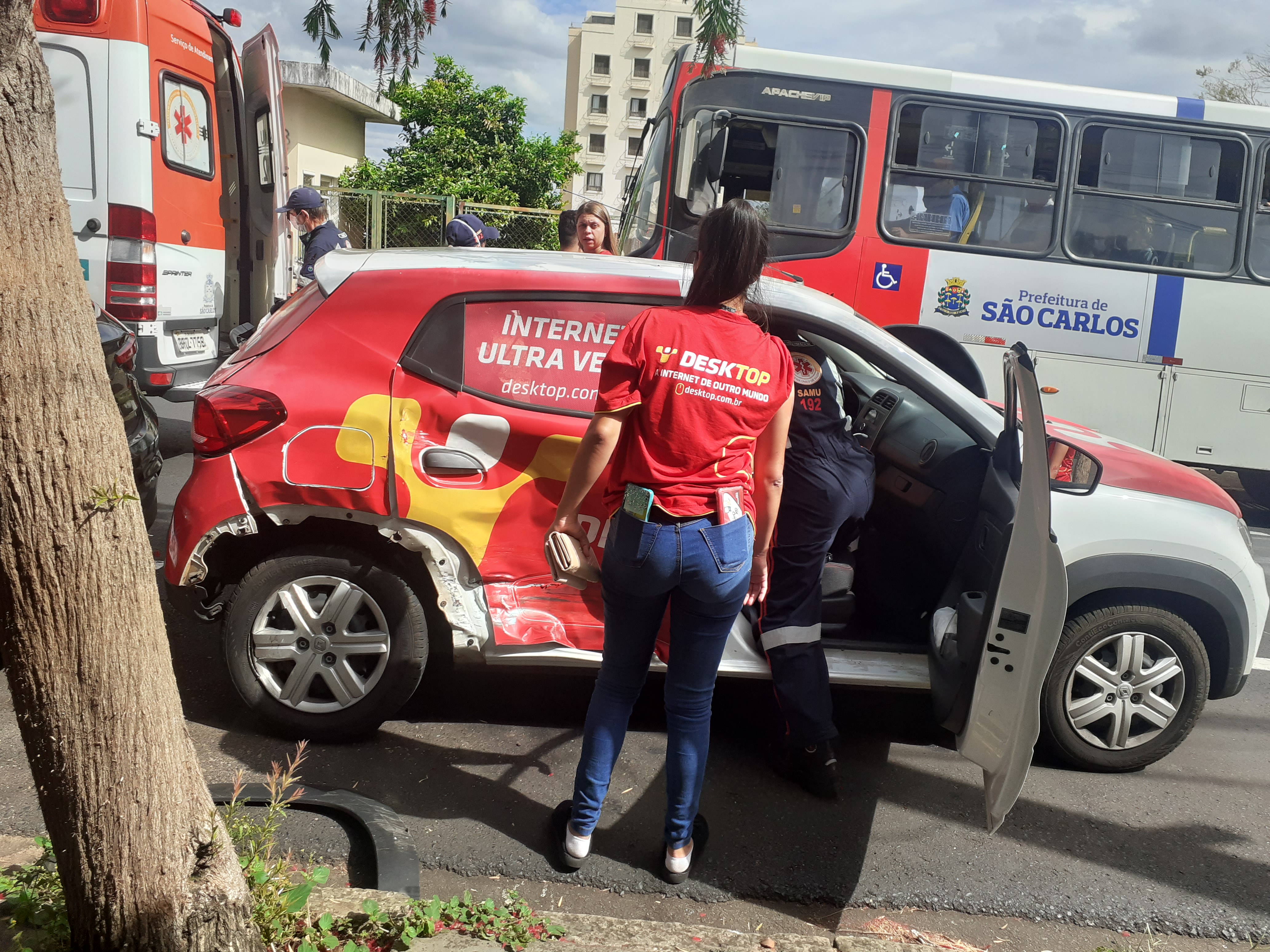 Duas pessoas ficaram feridas em um acidente de trânsito  ocorrido por volta das 14:40 desta sexta-feira, 11 de março de 2022, no cruzamento da Rua Major José Inácio, com a Rua Rui Barbosa, Centro de São Carlos-SP.
