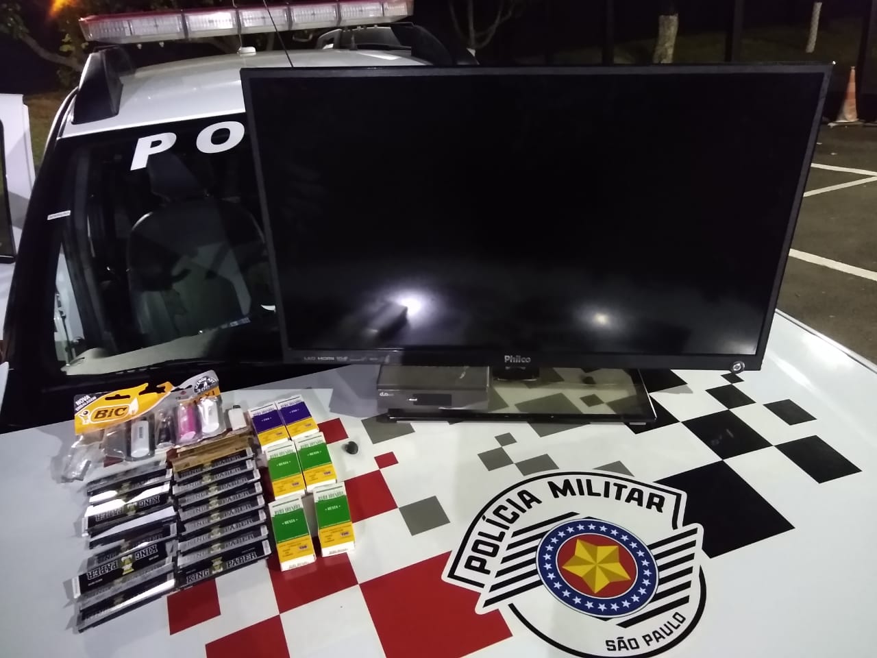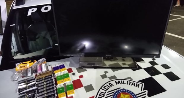Segundo informações, a equipe foi solicitada via Copom ( Centro de Operações da Polícia Militar) para atendimento de furto à lanchonete. No local foi encontrado a porta do estabelecimento arrombada e durante varredura no interior do estabelecimento localizado o ladrão. Durante busca pessoal foram encontrados em suas vestes 19 pacotes de papel de seda para preparo de cigarros, 5 isqueiros, 6 caixas de fumo e no pátio próximo a rua uma Televisão de 39 polegadas da marca Philco e um Receptor Duosat que o mesmo já havia separado para o furto.