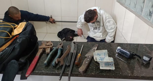 Segundo informações, uma pessoa viu dois indivíduos arrombando o portão de um prédio e furtando uma bicicleta. A testemunha acionou a PM. As viaturas fecharam o cerco e detiveram W. L, de 46 anos e D. P. 32.