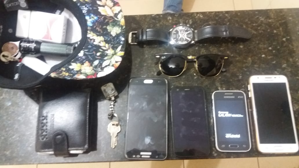 Durante vistoria veicular foi localizado o celular Samsung do hotel.A PM foi até à residência, sendo localizados os dois televisores.