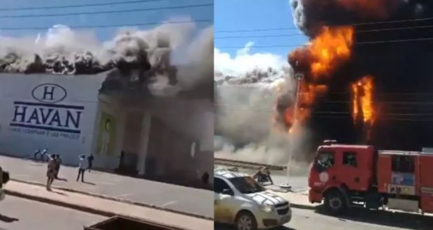 Uma loja da Havan em Vitória da Conquista, na Bahia, foi atingida por um incêndio de grandes proporções na manhã desta quarta-feira (28).Vídeos que circulam nas redes sociais mostram a loja, que inaugurou em abril de 2018, explodindo e completamente tomada pelo fogo. O Corpo de Bombeiros apura as causas do incêndio.Em comunicado, a Havan informou que a loja ainda estava fechada quando o fogo começou. “Não houve feridos. O Corpo de Bombeiros já está no local para controlar o fogo e a causa do incidente será apurada em seguida pelas autoridades competentes”, diz a nota.