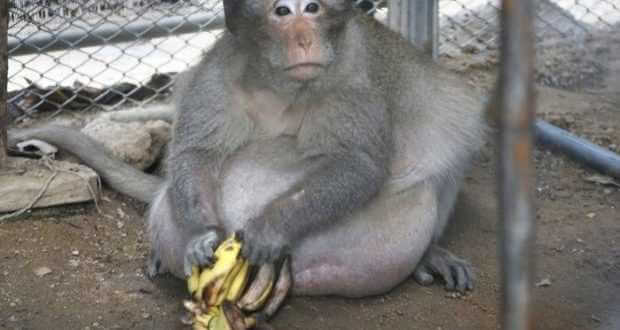 Macaco com obesidade mórbida é levado para clínica de regime