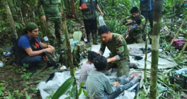 Lesly (13 anos), Soleiny (9), Tien Noriel (5) e Cristin (1) foram encontrados vivos na sexta-feira no meio da selva amazônica no sul do país, a 5 km do local do acidente, no qual três tripulantes adultos faleceram.