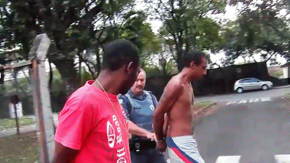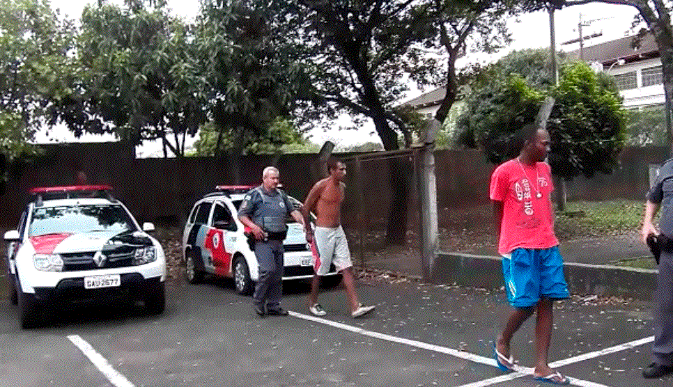 O CVP conversou com a mulher e ela relatou que estava na sua casa acompanhada de seu filho de 12 anos, quando dois marginais pularam uma janela e com um facão tentaram rendê-los. A mãe puxou o filho e adentraram em um banheiro. Desesperada a mulher começou a mandar mensagem via whatsapp para familiares que acionaram a PM e em poucos minutos viaturas chegaram ao local. A dupla já havia fugido levando carnes, bebidas entre outros objetos. Foi feito vistoria nas proximidades e Alexandre de Oliveira, de 29 anos e Robson Alexandre , de 35, acabaram sendo detidos.