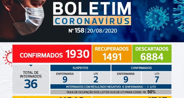 Na rede privada nenhuma pessoa está internada UTI adulto. Na enfermaria outros 4 pacientes estão internados, 1 com resultado positivo para a doença e 3 com suspeita da COVID-19. Esses números já estão contabilizados no total de internações.