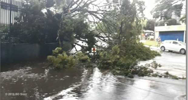 E mais um dia de chuva forte e muito transtorno em São Carlos-SP. A chuva que começou no final desta tarde de quarta-feira, 21-03-2018, não foi diferente de ontem, pois vários pontos da cidade foram alagados. Uma grande árvore caiu na região do Campus Um da USP. A serra do bairro Cidade Aracy também foi atingida pela chuva.
