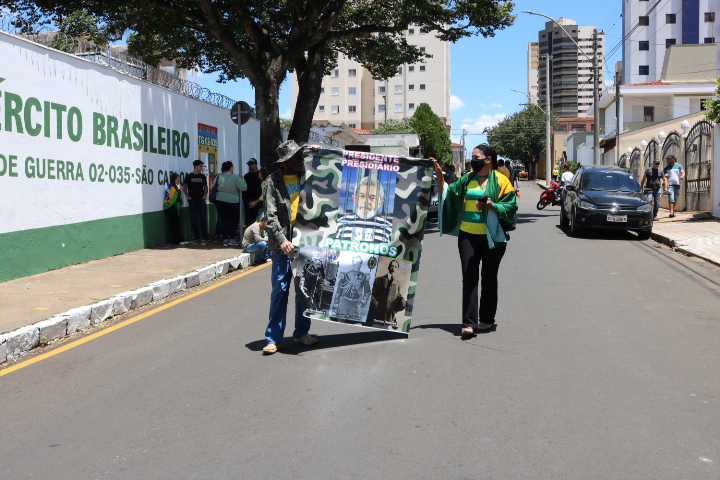 Manifestação defronte ao Tiro de Guerra, São Carlos-SP