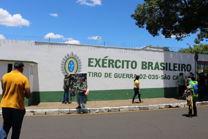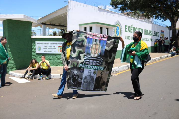 Nesta manhã de 04-11-2022, data que São Carlos-SP, completa 165 anos, manifestantes foram para frente do Quartel do Tiro de Guerra, para pedir que intervenção militar. Eles não aceitam o resultado das urnas do último domingo, 30-10-2022, onde Lula ( PT) foi eleito o presidente do Brasil.
