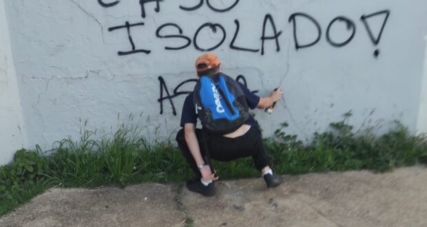 Um indivíduo  foi flagrado  escrevendo no muro do supermercado. Outros teriam tentado invadir o supermercado.  A PM foi acionada, mas ninguém foi detido.
