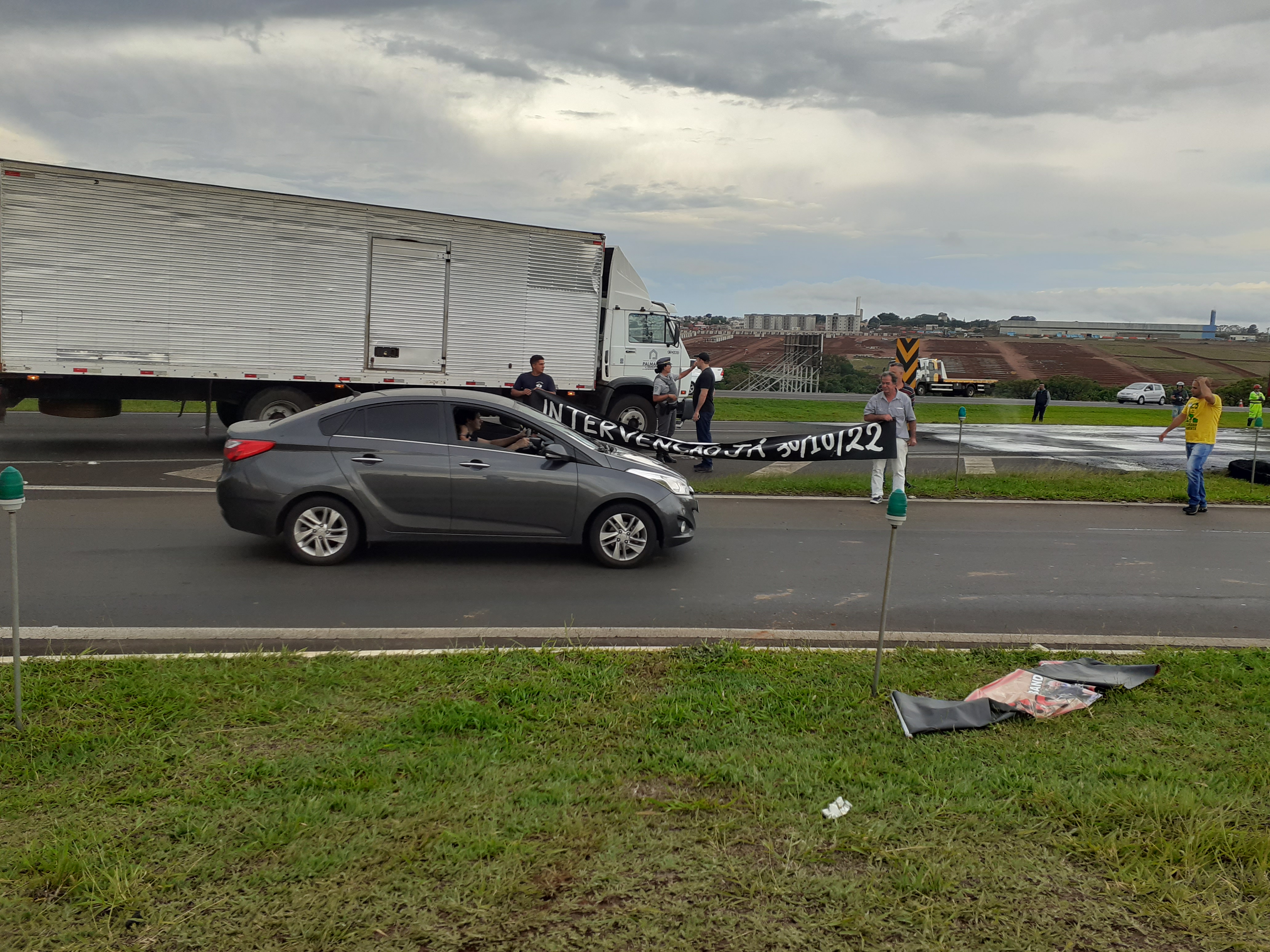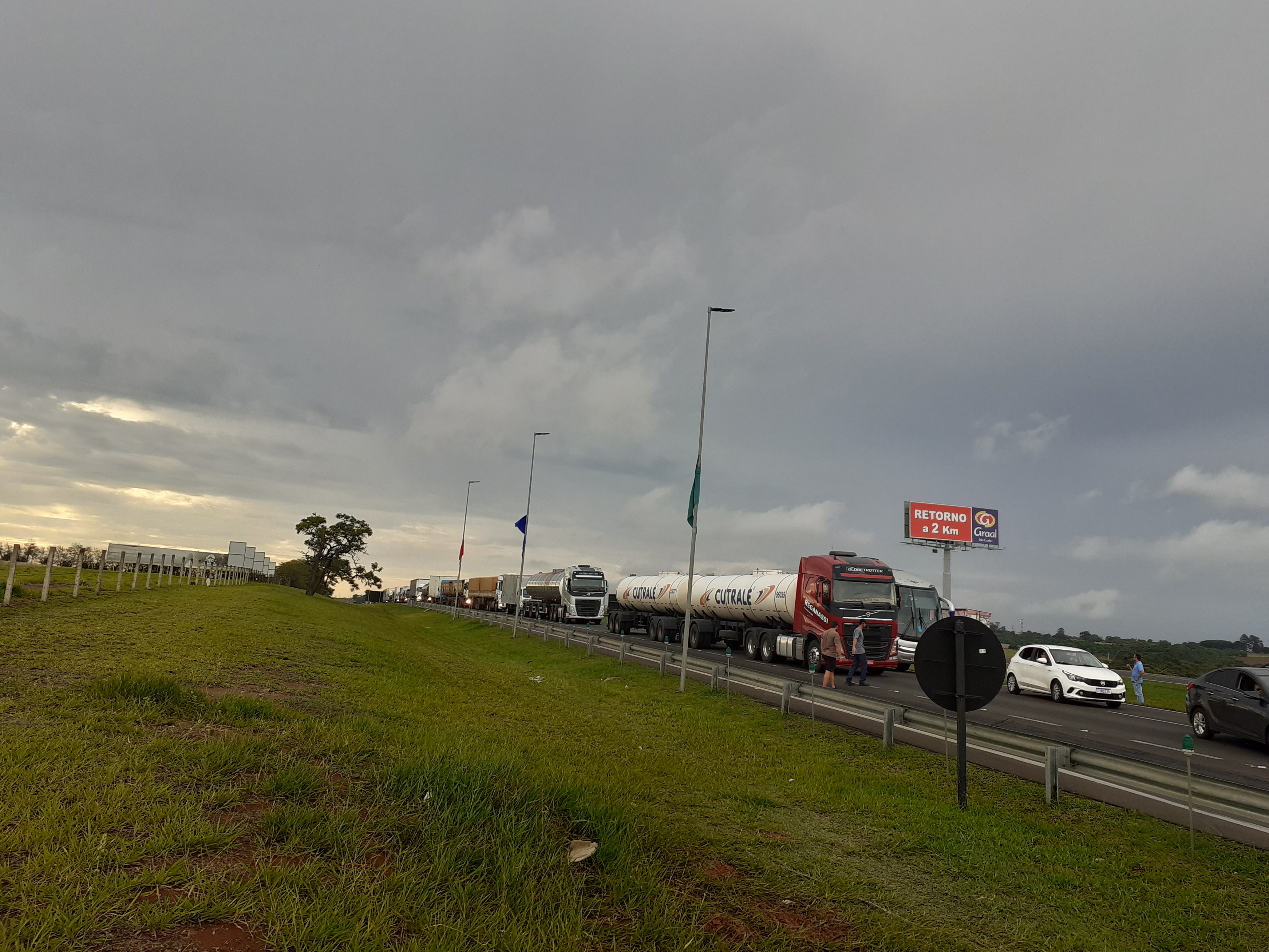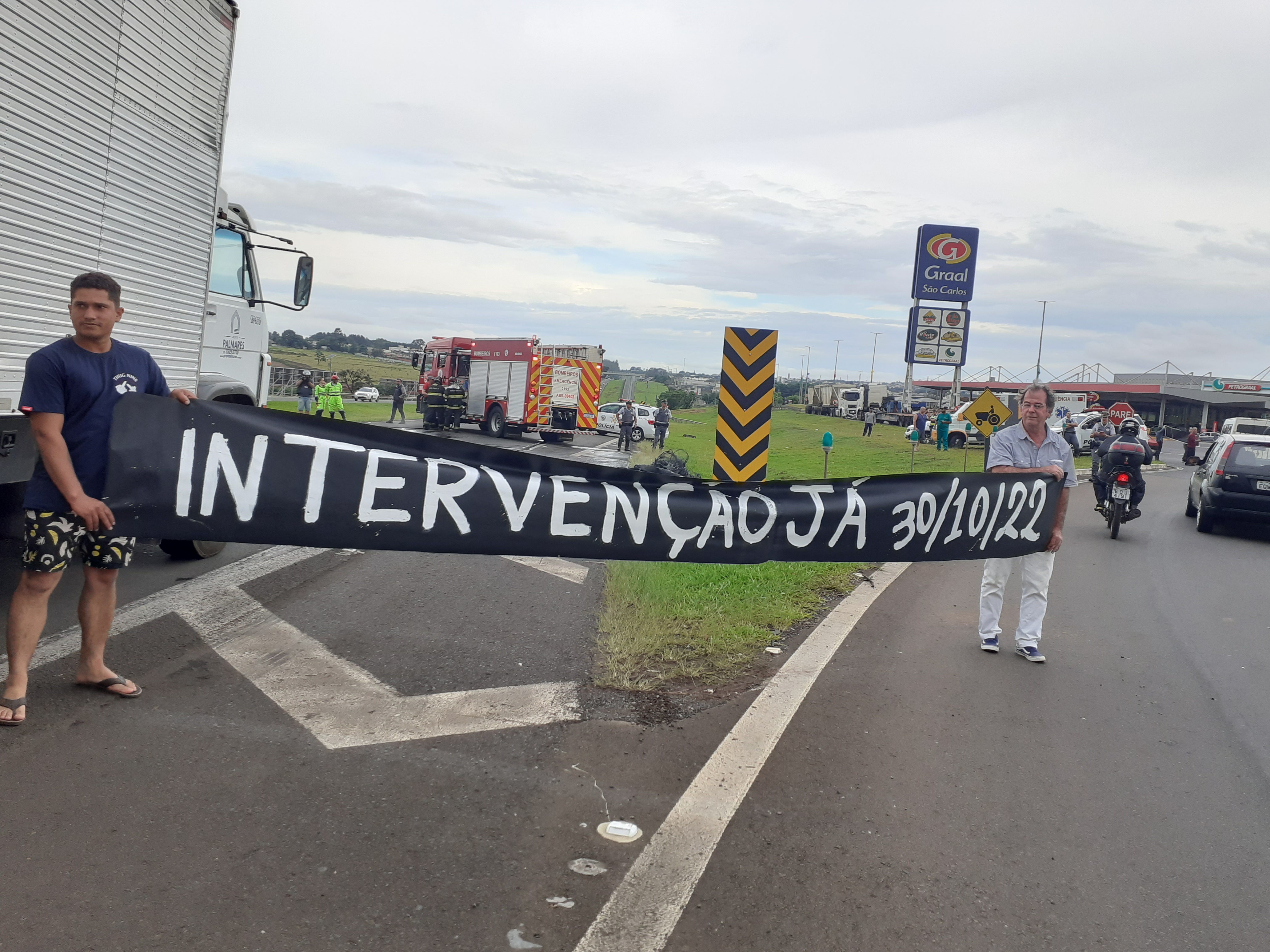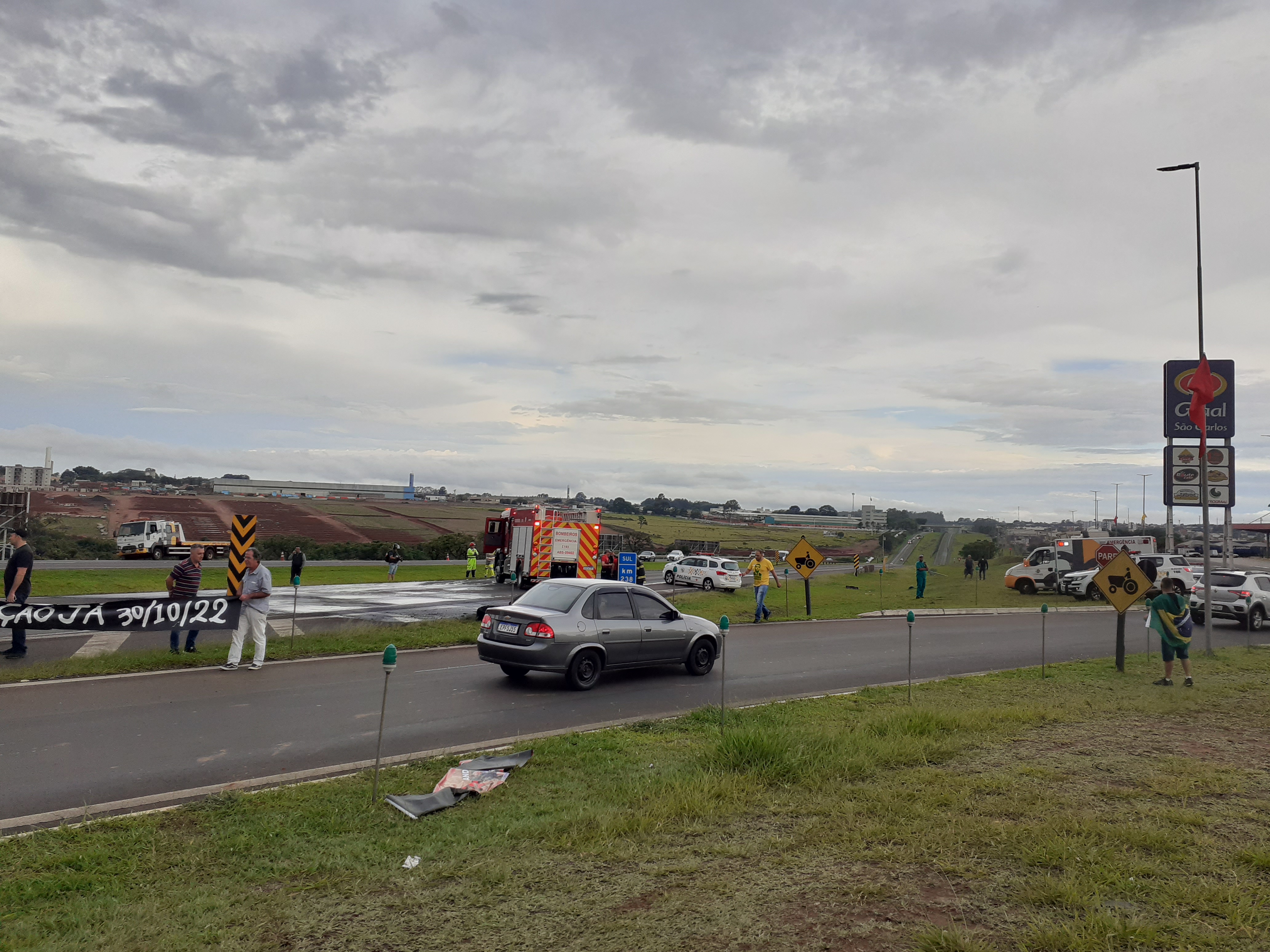 Manifestantes estão realizando uma paralisação nesta segunda-feira, 31/10/2022, no km 238 da rodovia Washington Luís, São Carlos-SP. Parte da rodovia está parada ( sentido interior/capital).