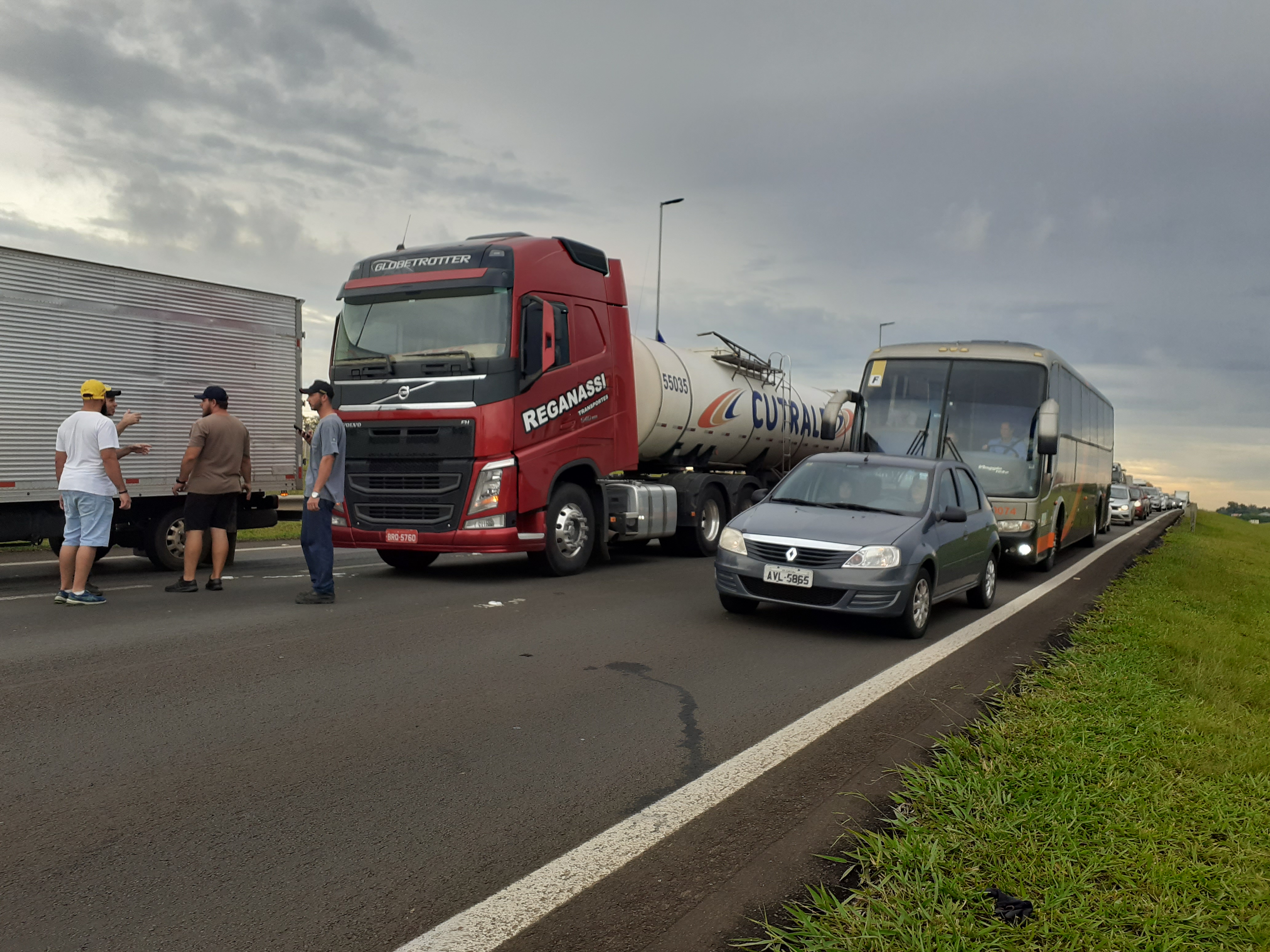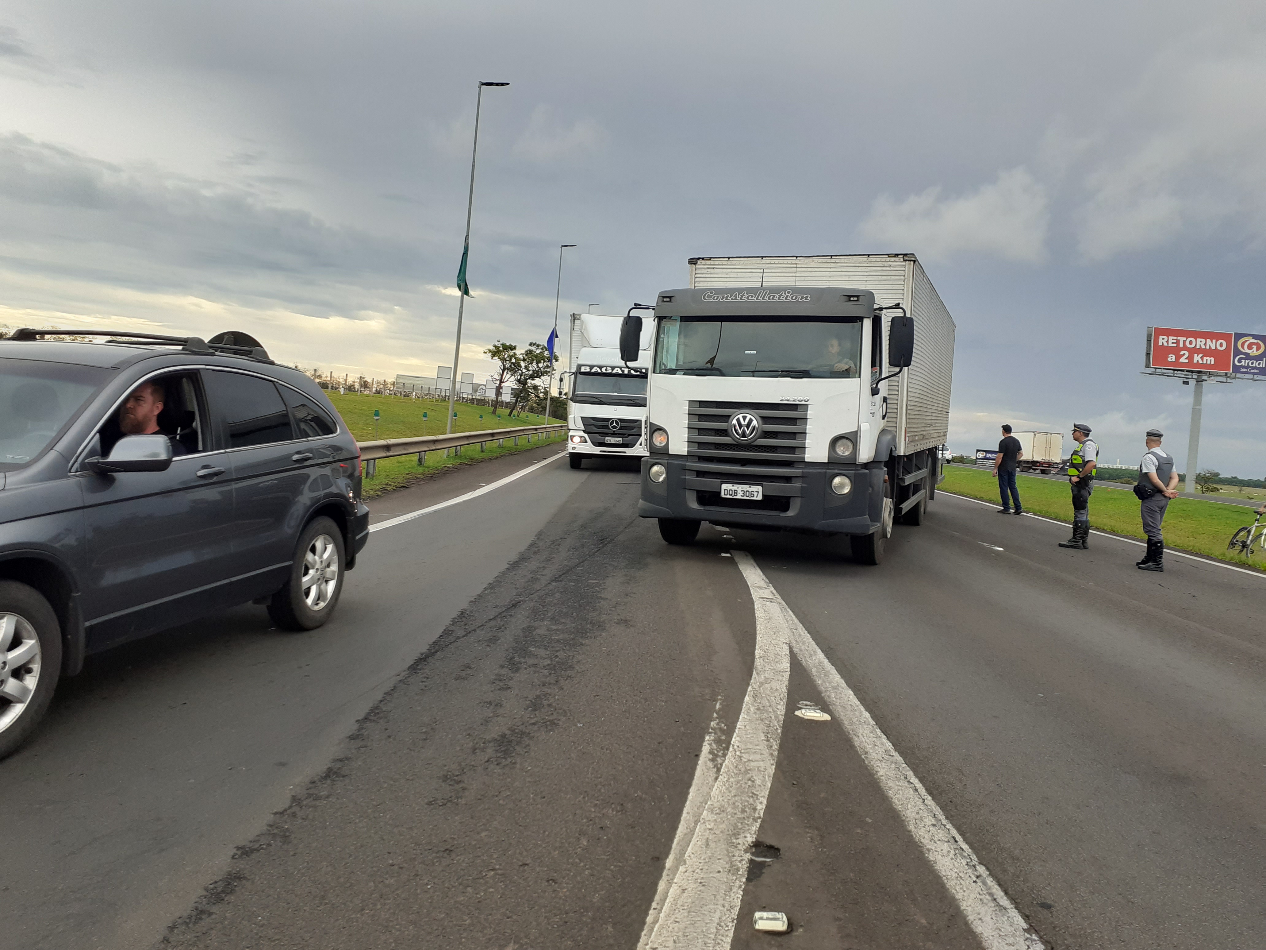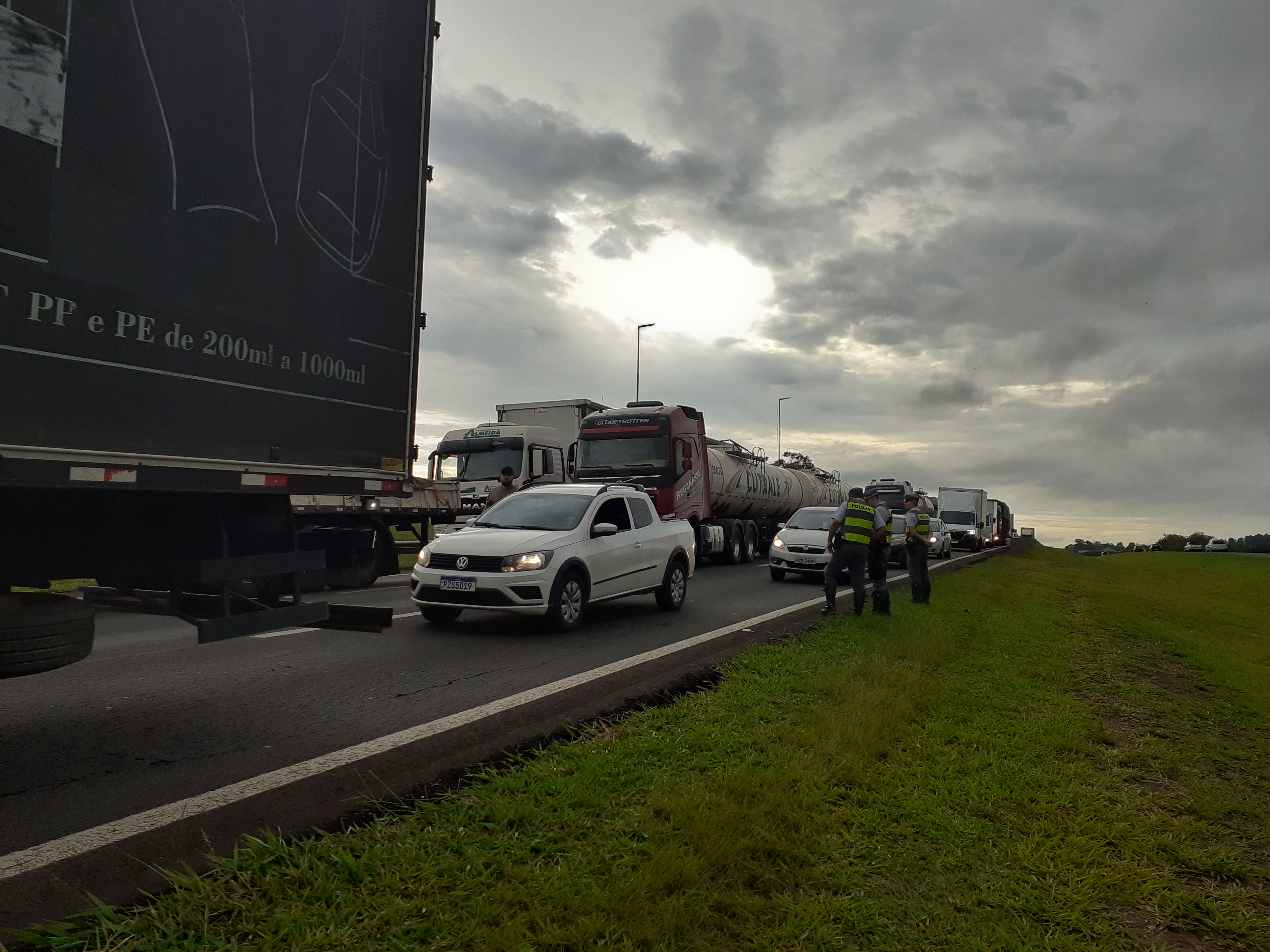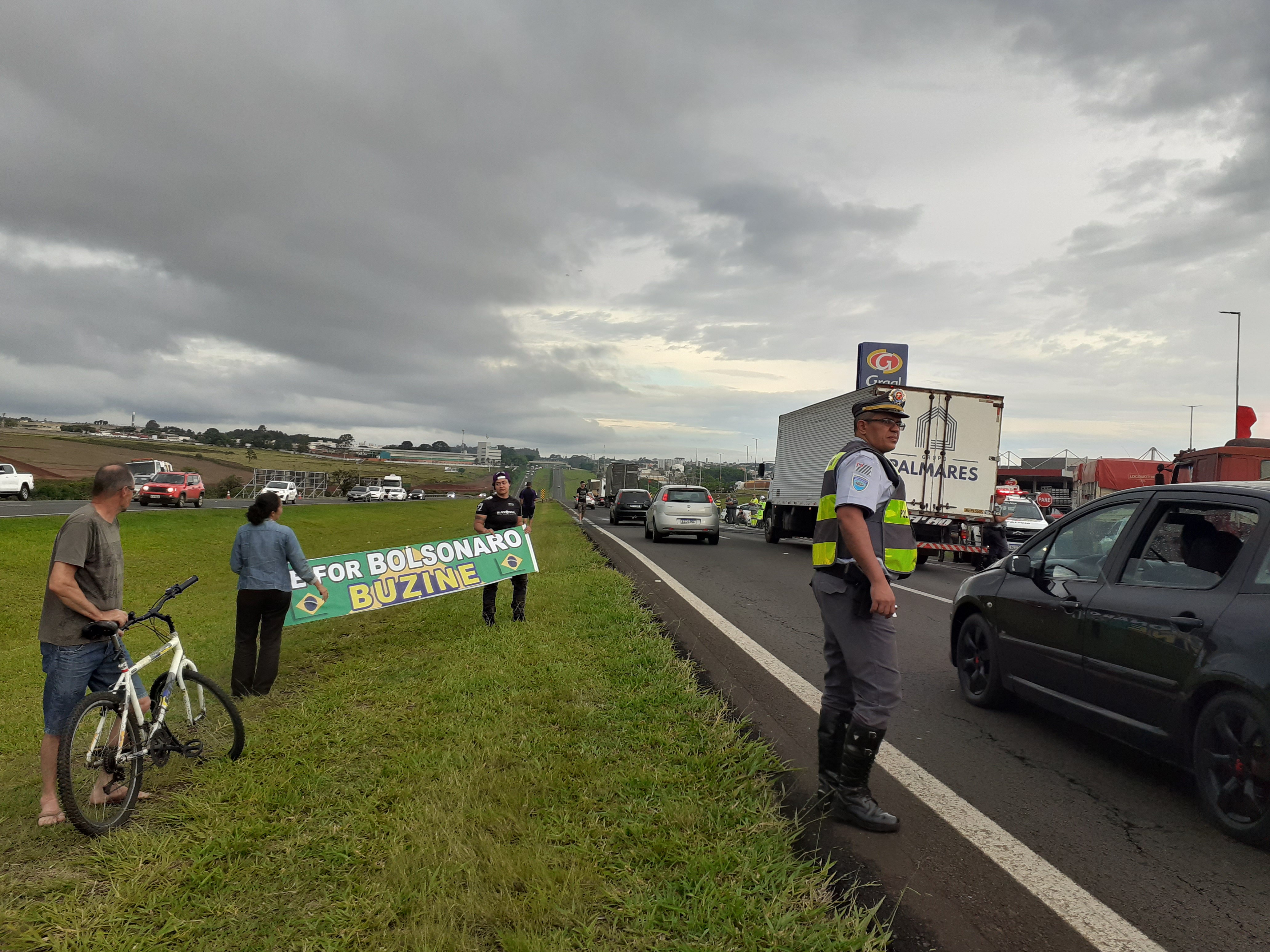 Manifestantes estão realizando uma paralisação nesta segunda-feira, 31/10/2022, no km 238 da rodovia Washington Luís, São Carlos-SP. Parte da rodovia está parada ( sentido interior/capital).
