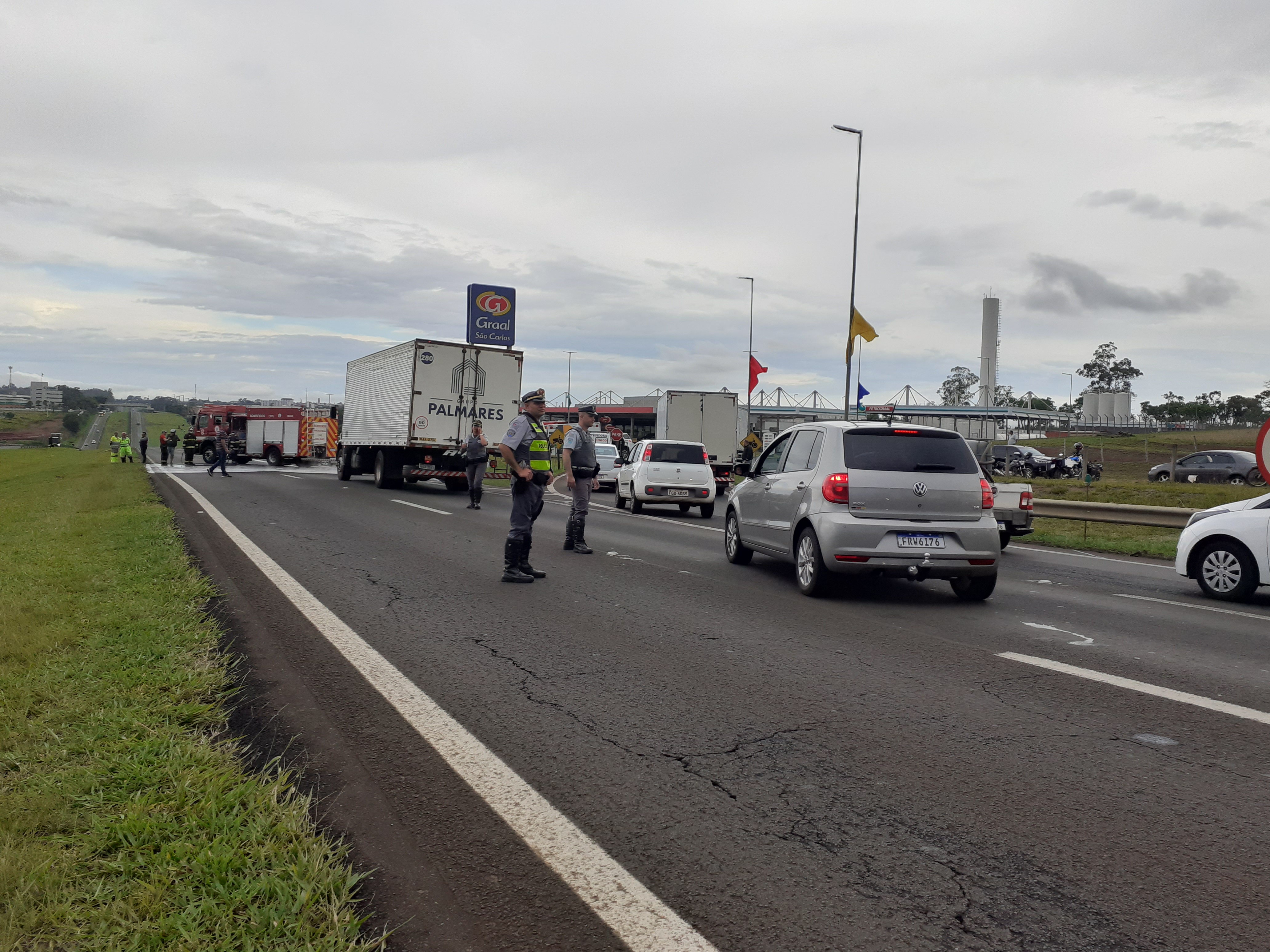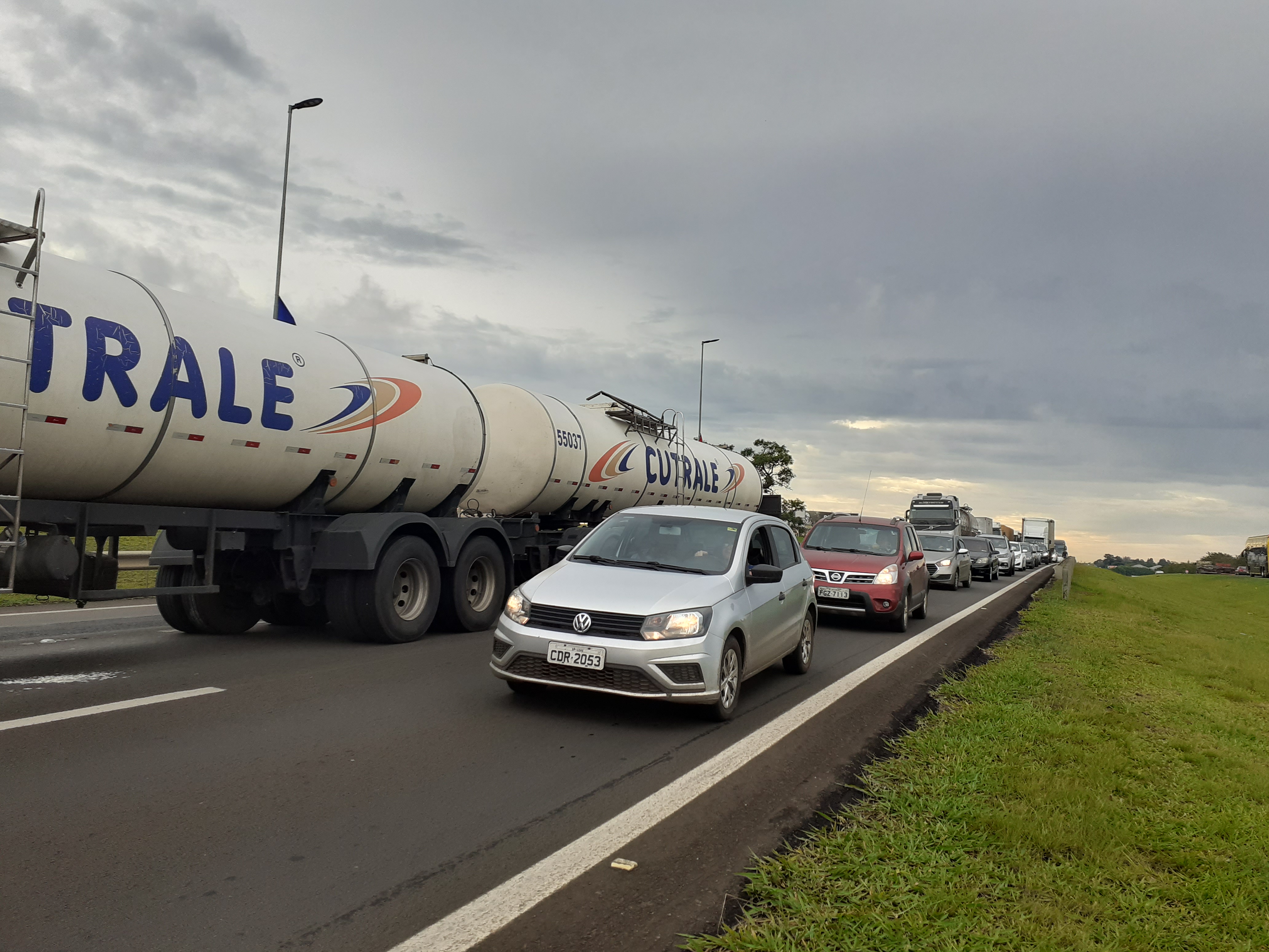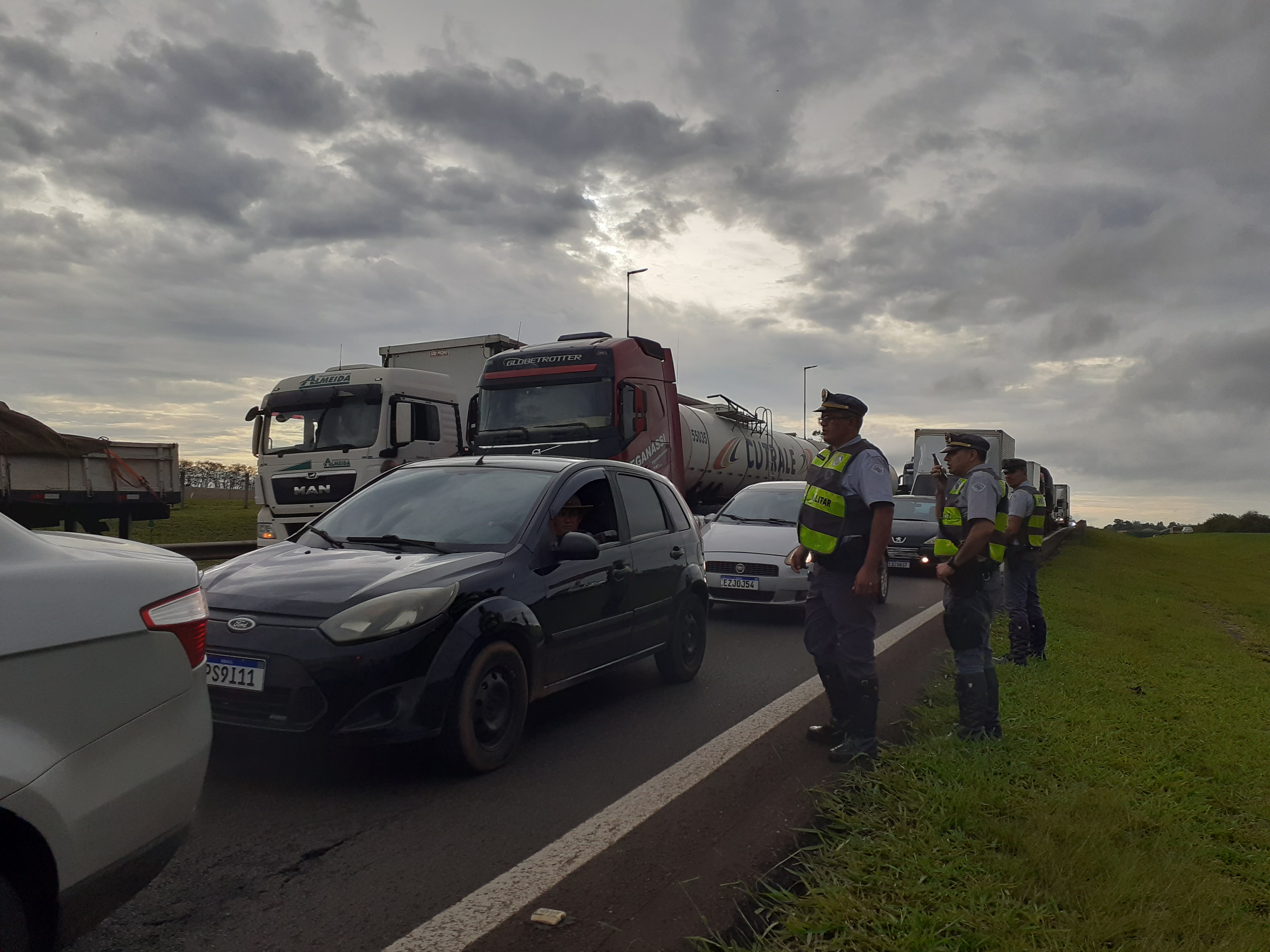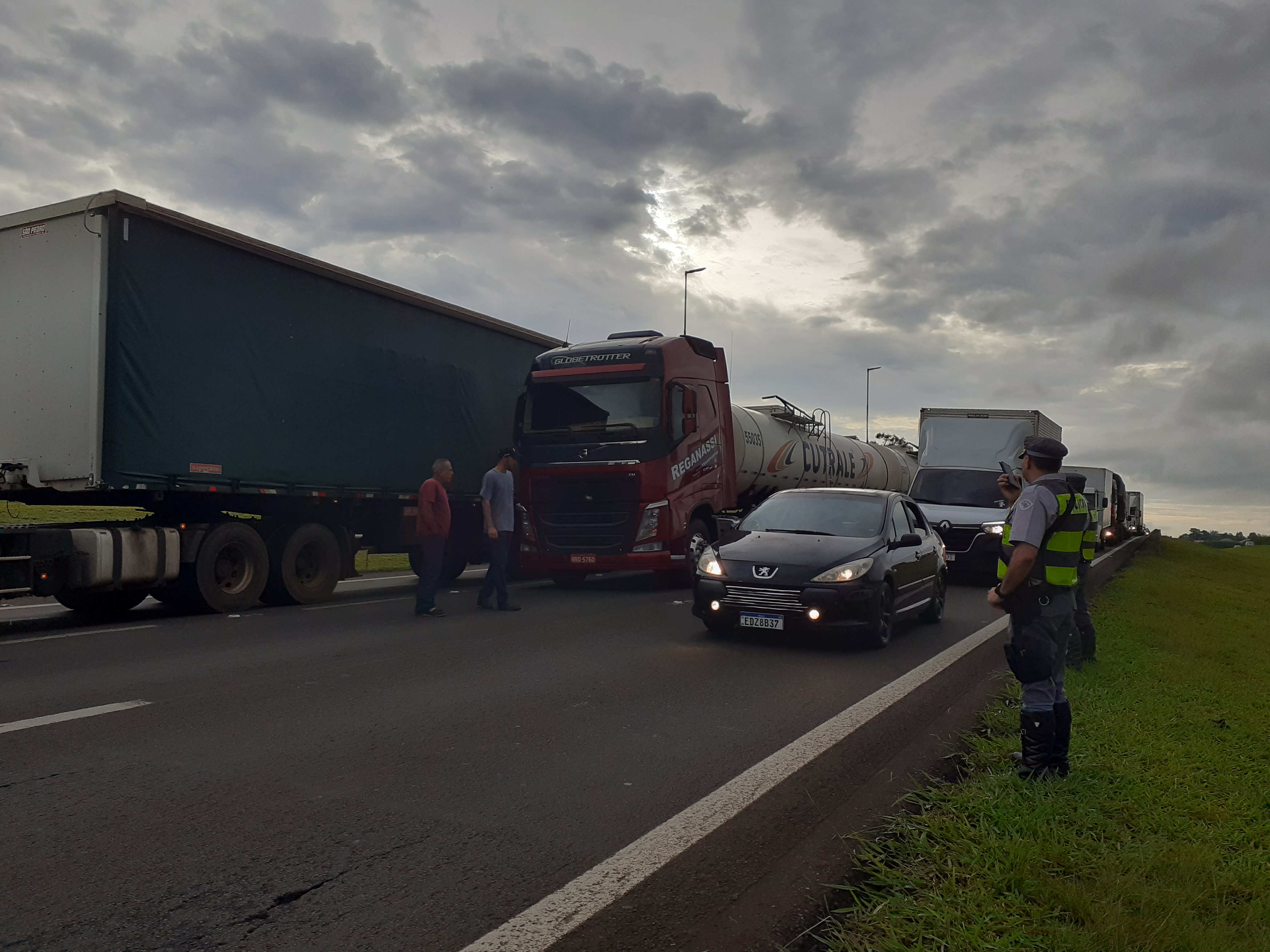 Manifestantes estão realizando uma paralisação nesta segunda-feira, 31/10/2022, no km 238 da rodovia Washington Luís, São Carlos-SP. Parte da rodovia está parada ( sentido interior/capital).