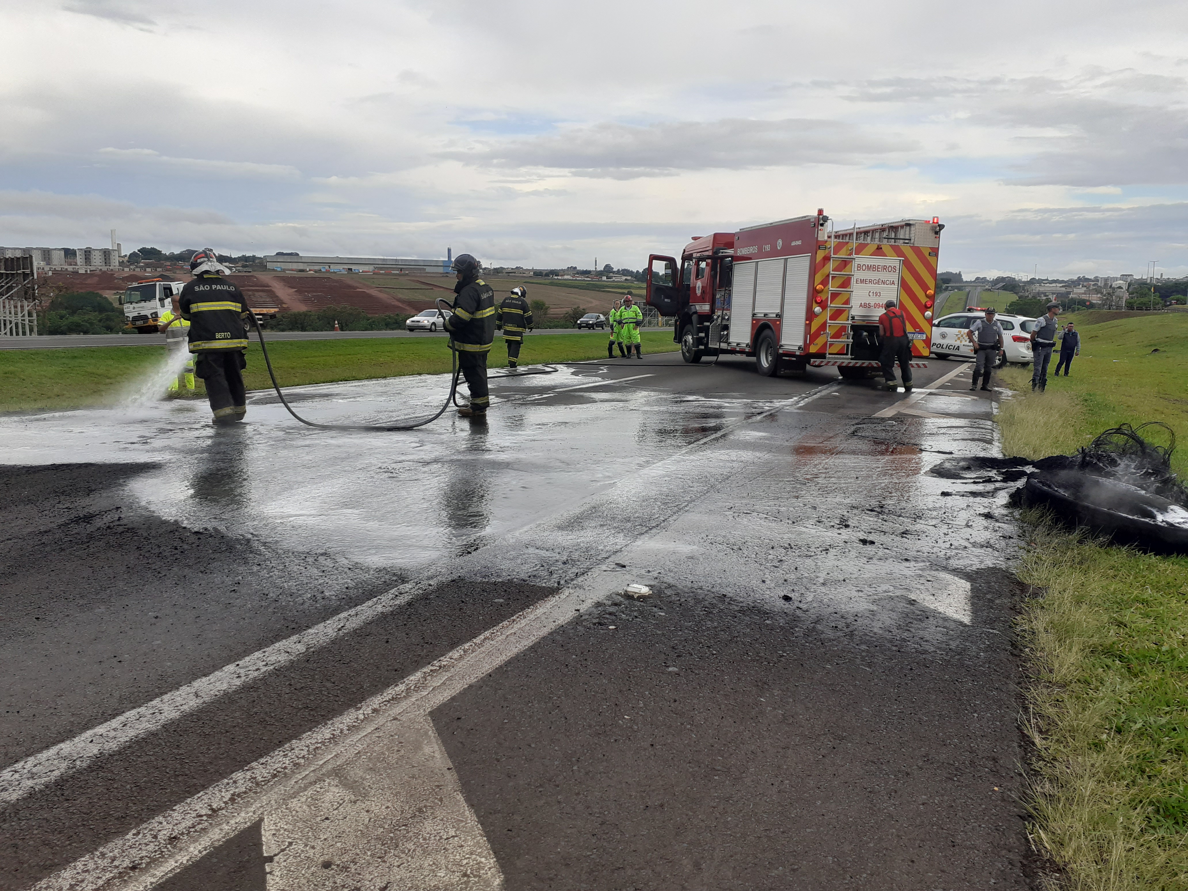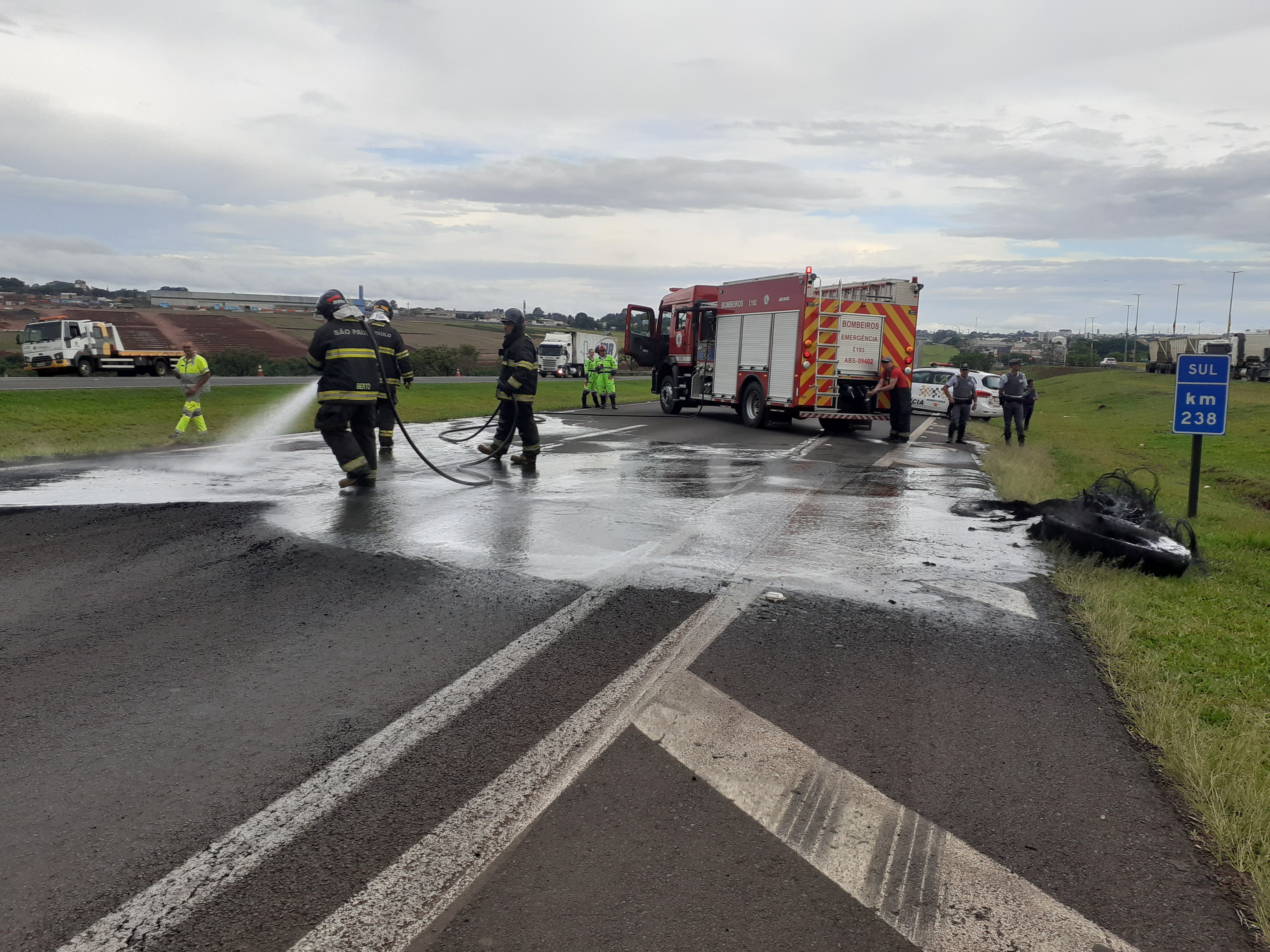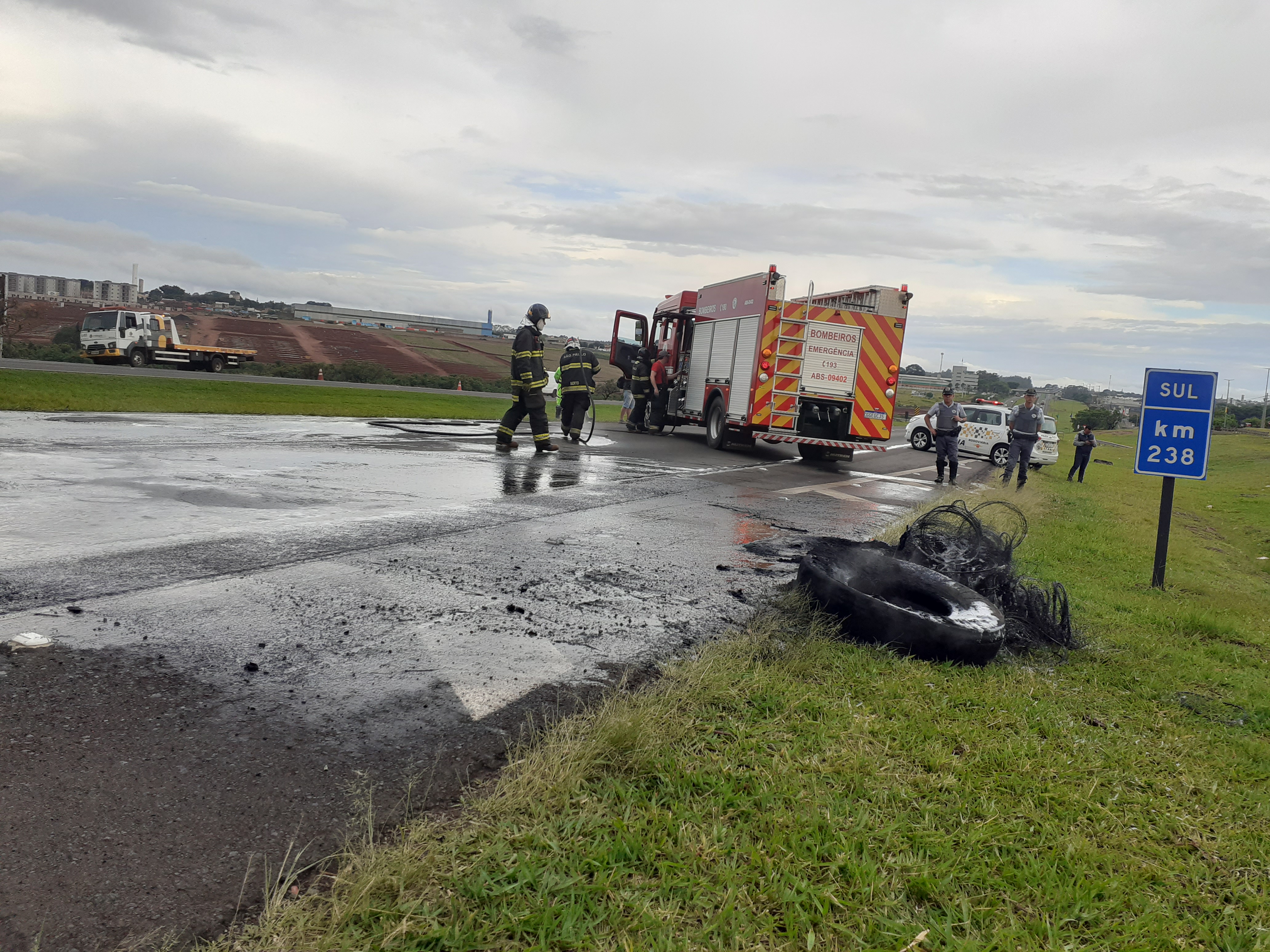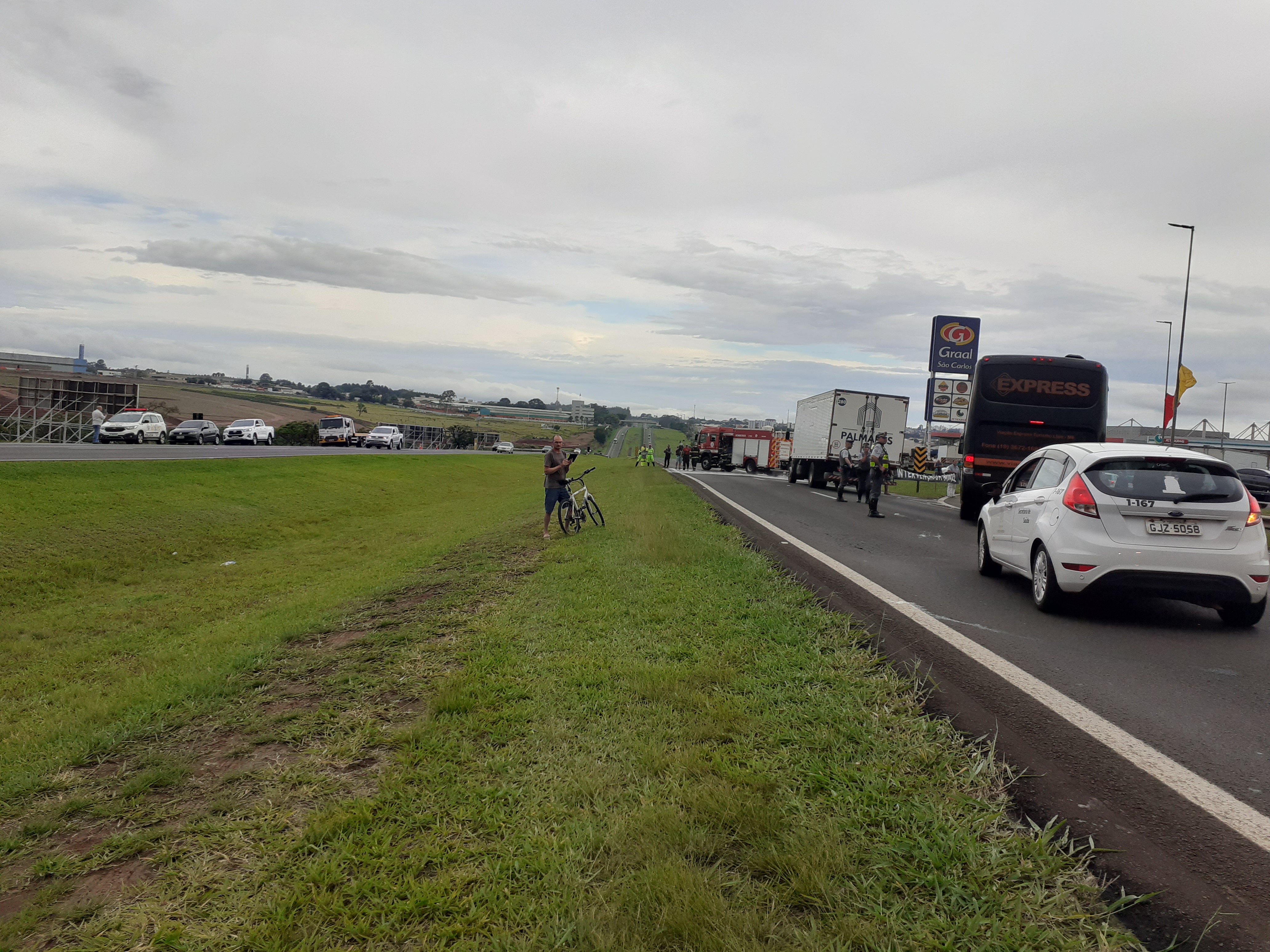 Manifestantes estão realizando uma paralisação nesta segunda-feira, 31/10/2022, no km 238 da rodovia Washington Luís, São Carlos-SP. Parte da rodovia está parada ( sentido interior/capital).