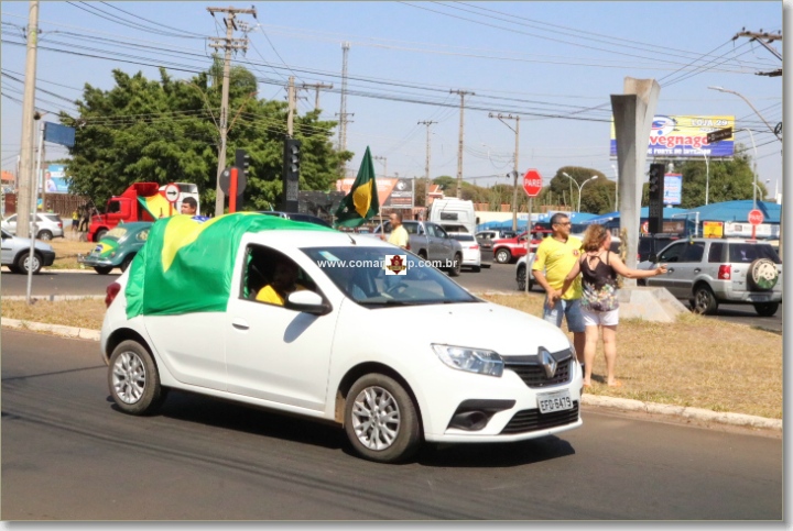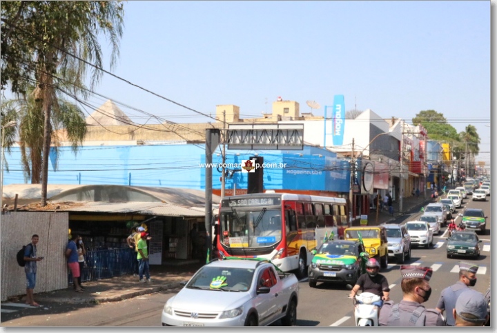 Ato de Sete de Setembro mobilizou centenas de veículos e manifestantes, em São Carlos-SP. O evento iniciou as 10h desta terça-feira, 7 de setembro de 2021. Os apoiadores do Bolsonaro se concentraram na Praça Itália, onde cantaram o Hino Nacional. Depois passaram pela Avenida São Carlos e pararam na Avenida Grécia.