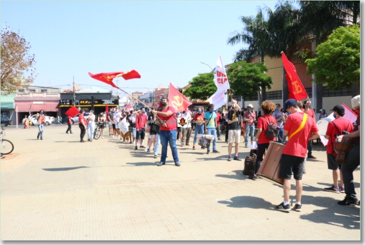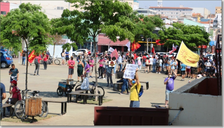 Na praça do Mercado Municipal, Centro, cerca de 250 pessoas apoiavam os partidos da esquerda.