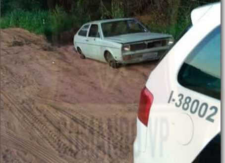 Os policiais, cabo Tercio e Alex estiveram no local e acionaram o guincho para fazer a remoção. M as o guincho atolou e não foi possível fazer a remoção. A vítima foi comunicada, mas não compareceu ao local, assim a carcaça do veiculo ficou no meio do mato .