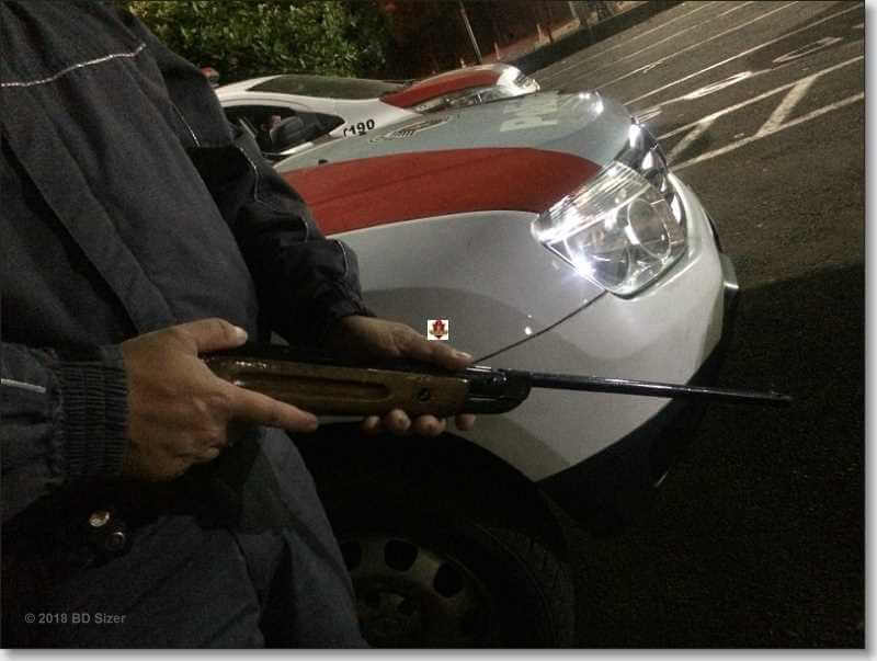 Segundo informações, por volta das 20:43, os policiais militares, cabo Silva e Fábio de Oliveira foram acionados para o  local para atender uma briga de casal. No local a mulher de  45 anos disse que havia discutido com o marido d3 39 anos e este havia lhe ameaçado. A mulher contou também que o marido tinha uma arma de fogo na residência.   Ela disse que o marido havia lhe ameaçado de morte com a tal arma. A espingarda de pressão foi localizada  e as partes encaminhadas ao Plantão Policial onde forma ouvidas e liberadas.  Foi registrado boletim de ocorrência de ameaça . A mulher foi orientada dos direitos.