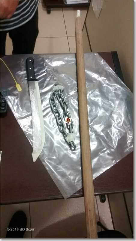 No carro foi localizado um facão e um bastão de madeira. A suposta amante de 31 anos foi liberada.