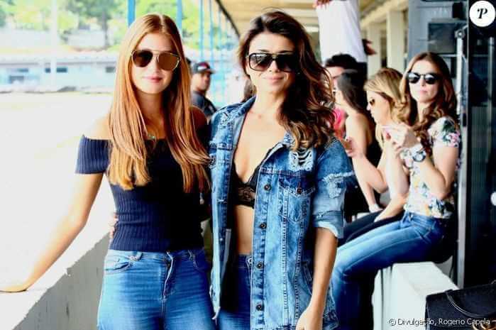 Marina Ruy Barbosa prestigiou o seu noivo, o piloto Xandinho Negrão, ao lado da amiga Paula Fernandes, no sábado, dia 28, em Interlagos. A atriz, que causou polêmica após posar com vestido longo e decotado ao lado de seu cachorro, assistiu corrida do amado com quem pretende se casar ainda este ano.