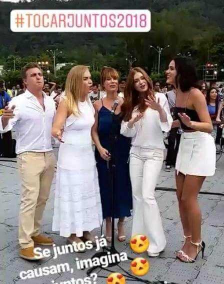 A ruiva e a morena ainda posaram com Luciano Huck, Angélica e Mariana Ximenes e fizeram a alegria dos fãs ao aparecerem juntas em fotos e vídeos.