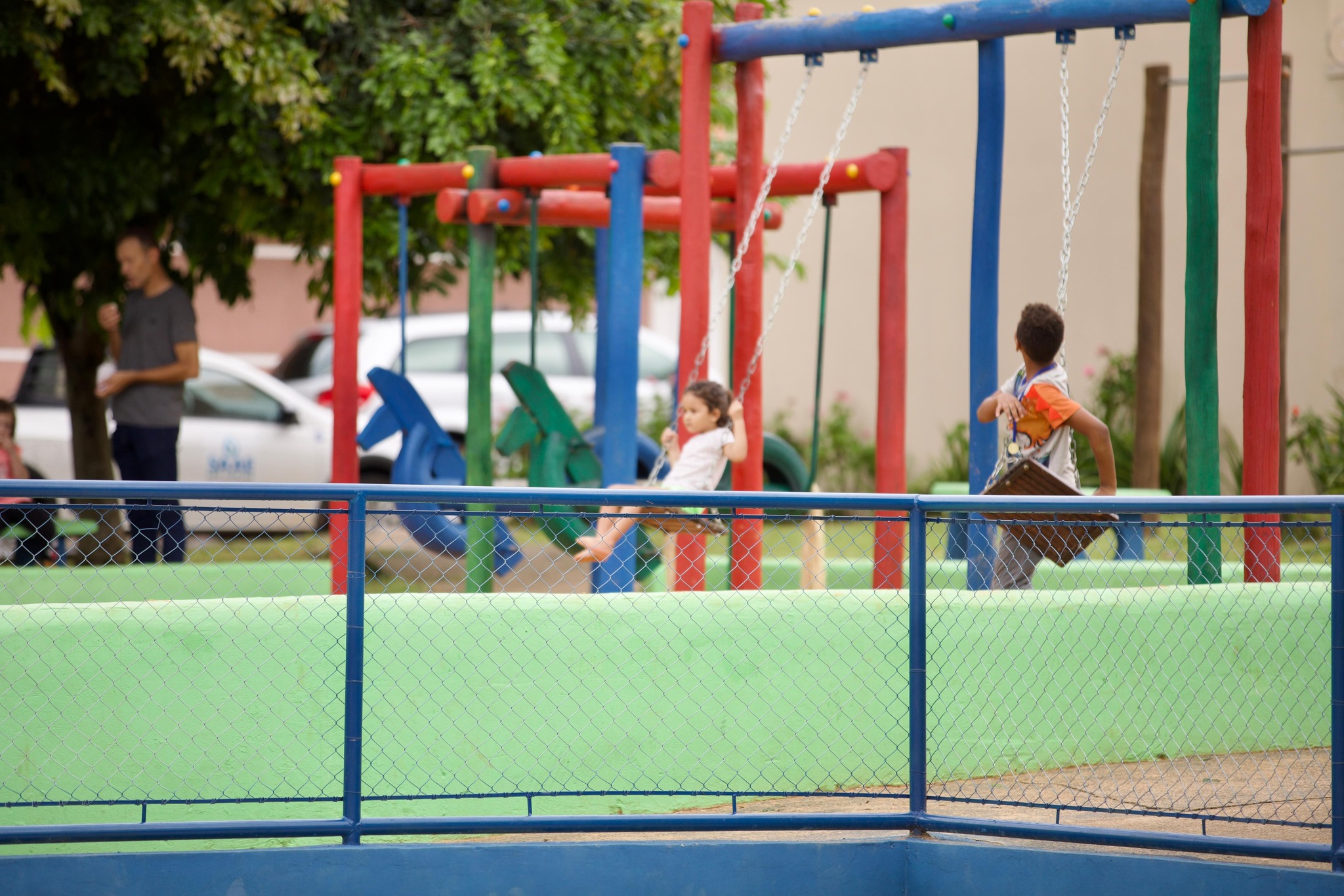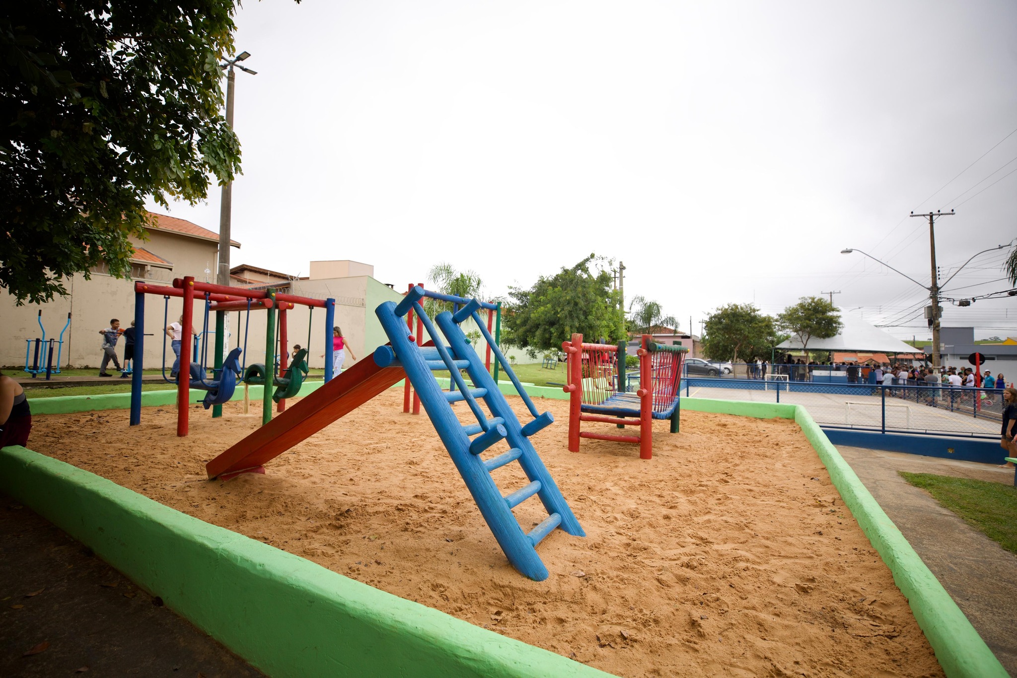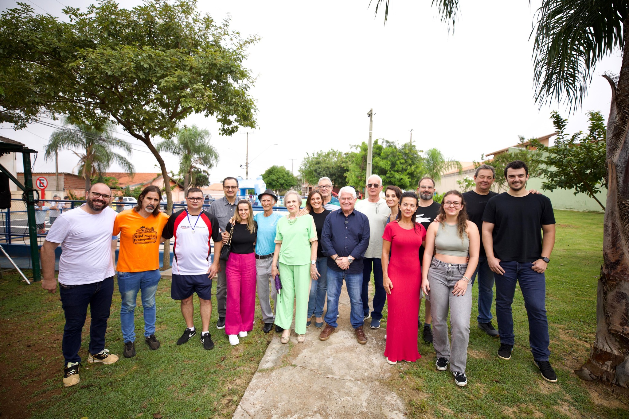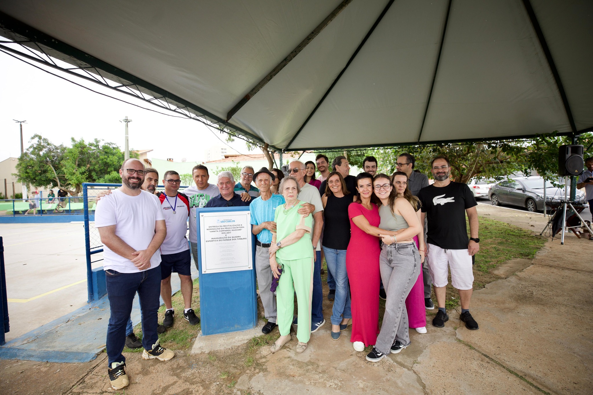 A Praça Annita Zapparoli Nazzari, no Parque dos Timburis; autoridades familiares e amigos presentes à inauguração