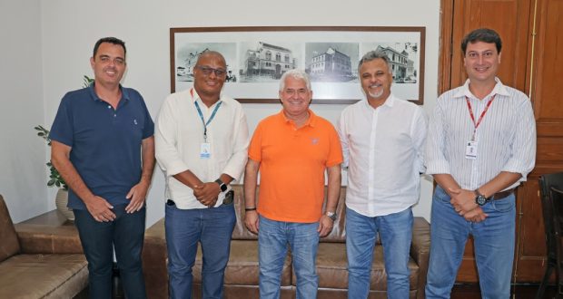 Marquinho Amaral com Julio Cesar de Oliveira, da CPFL Energia, o Secretário Cesinha Maragno, o Diretor Acenir Magalhães e o chefe de Gabinete Kleber Luchesi