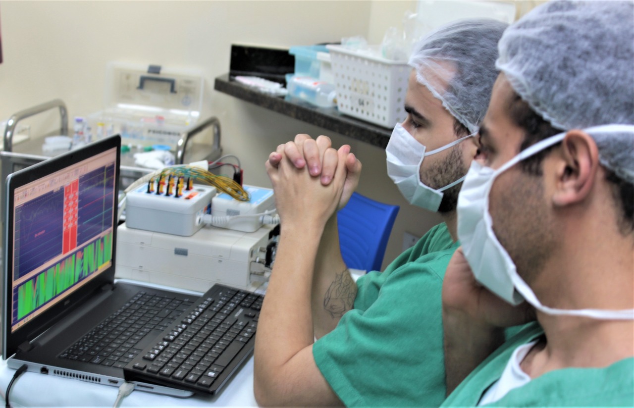 O procedimento é realizado usando equipamentos com tecnologia de ponta. Antes do procedimento, vários eletrodos são colocados na paciente. Esses eletrodos ficam ligados a um monitor e é por meio dele que uma equipe formada por um neurofisiologista e duas neuropsicólogas fazem a monitorização durante a cirurgia.