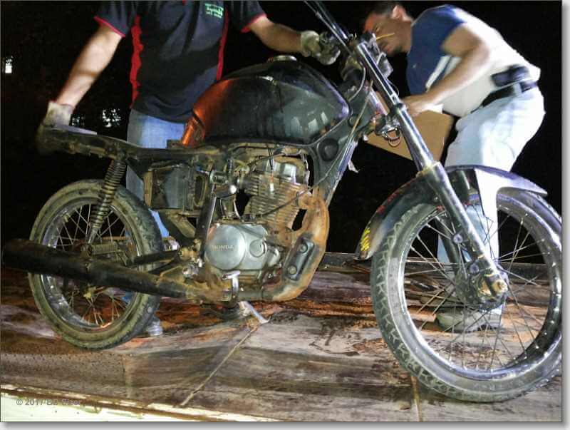 Segundo a PM, a moto era conduzida por um menor de idade. Apesar de estar sem placa, não constava queixa contra a mesma.