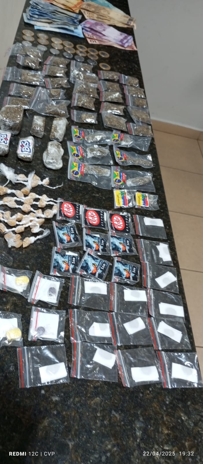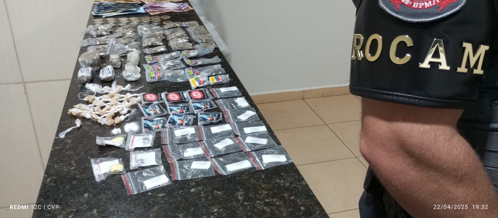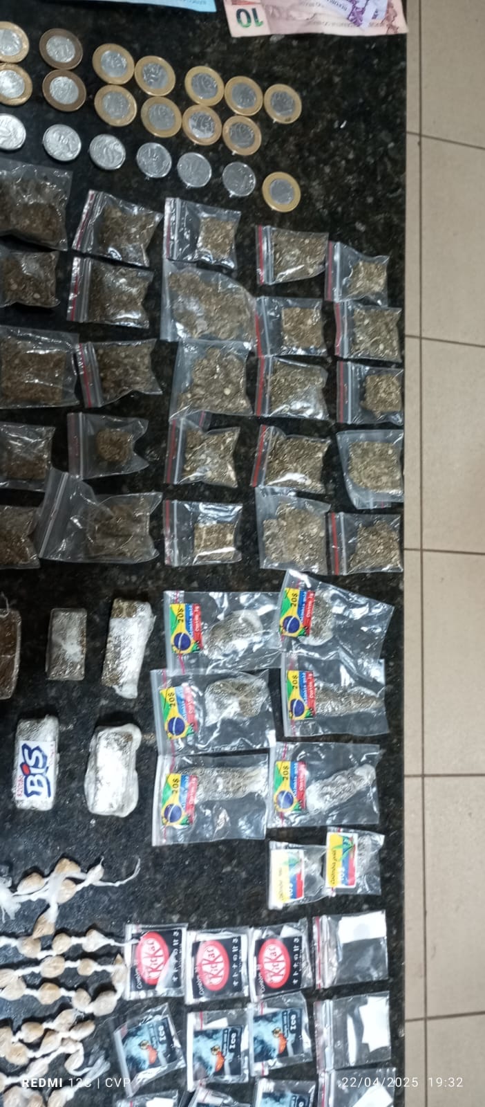 Um menor de 16 anos foi detido pela ROCAM nesta noite de terça-feira, 22 de abril de 2025, com drogas na Rua da Paz, CDHU, bairro Vila Isabel, São Carlos-SP.